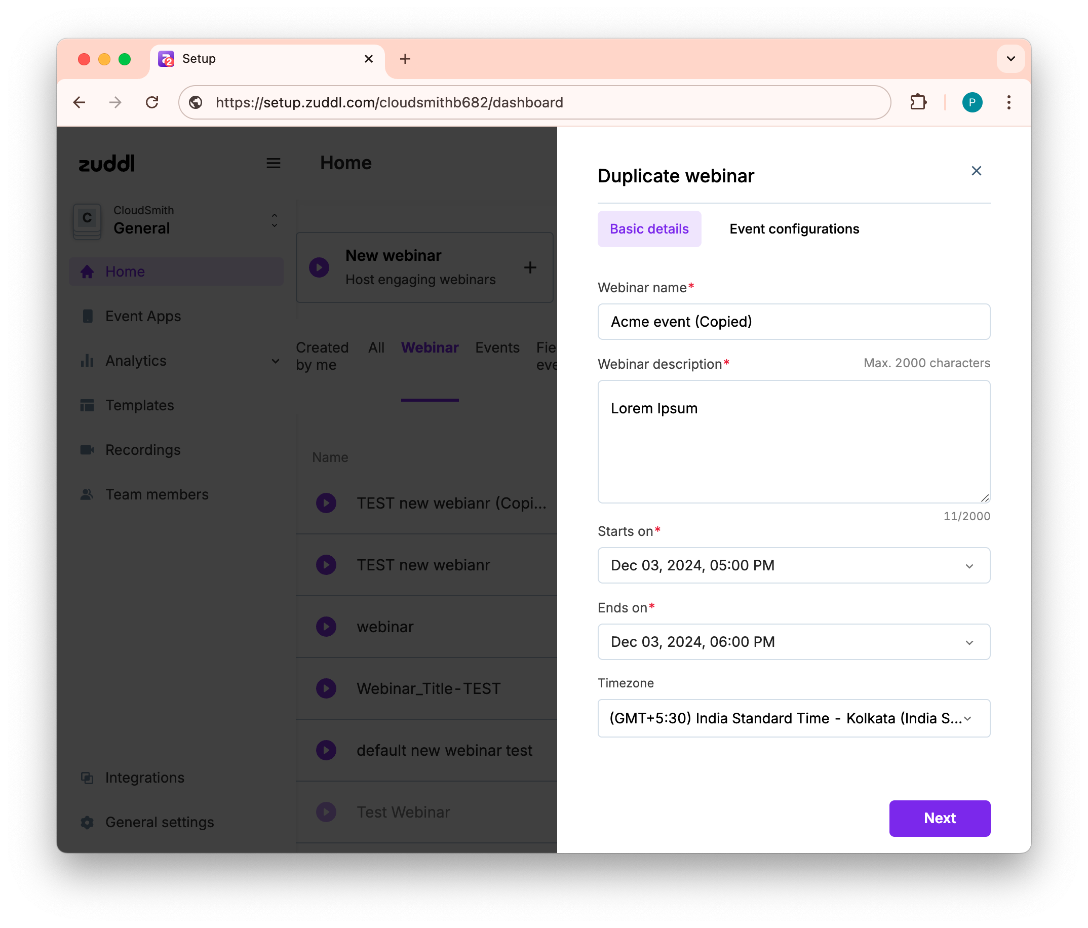 How to Duplicate a Webinar in Zuddl