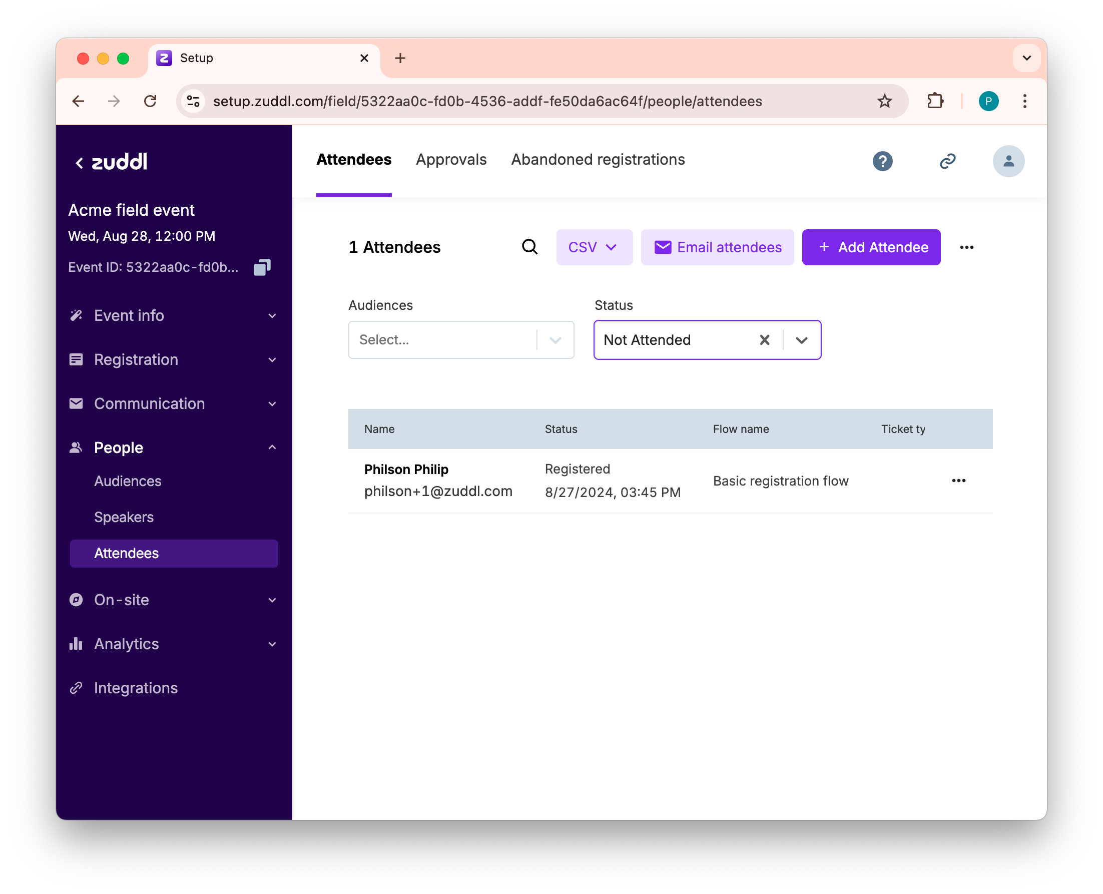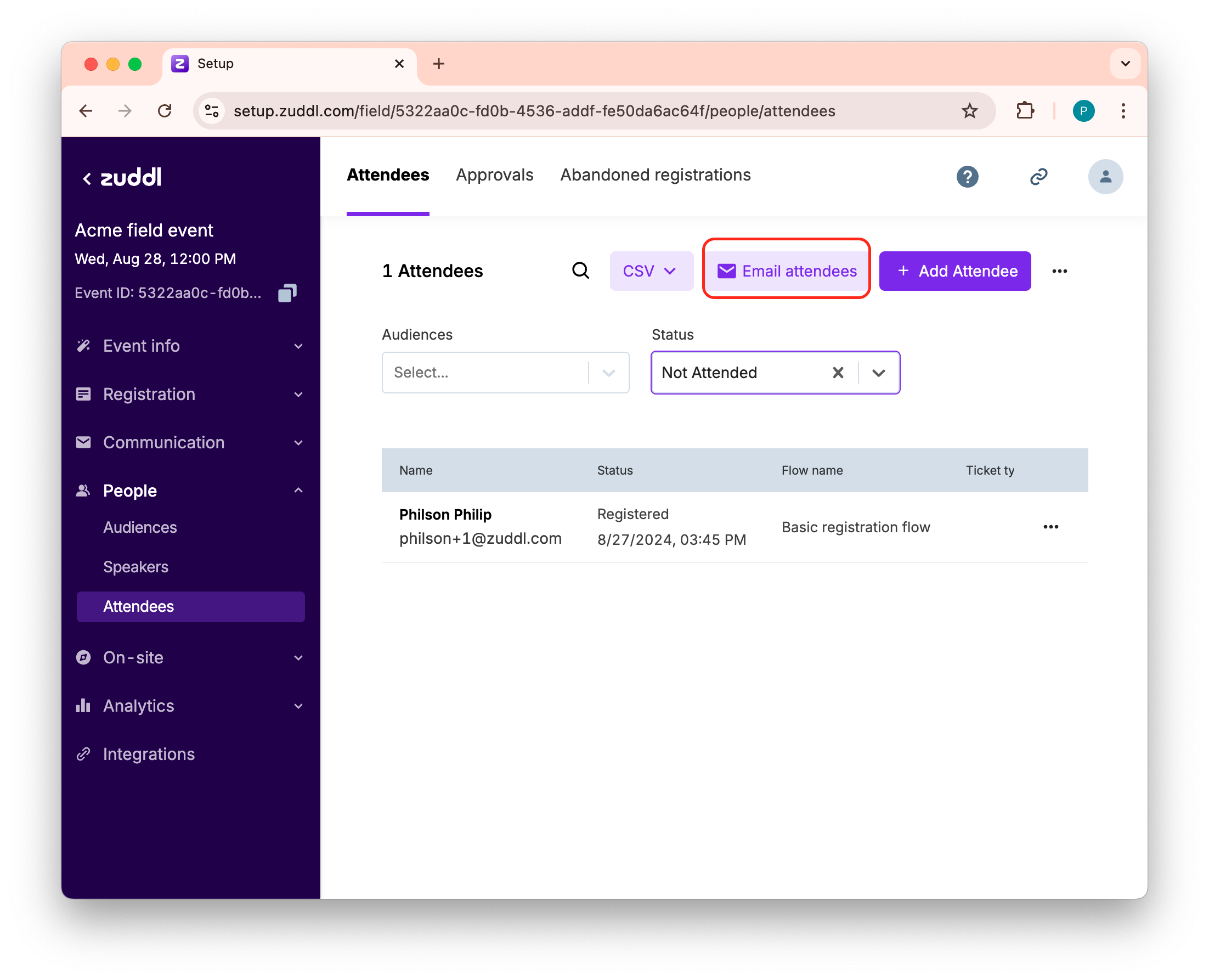 From the Audiences and Status drop-down menu, select from the menu to sort through the attendees and help prepare your list.