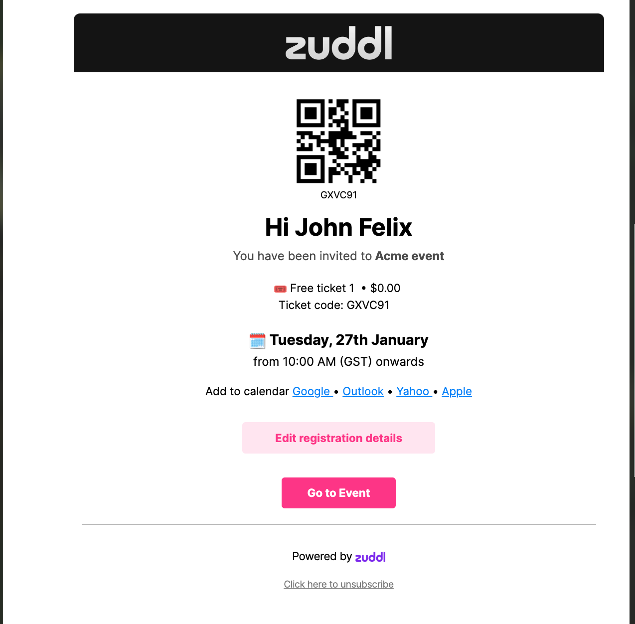 The email would contain the Go to event button which would take you to the event page.