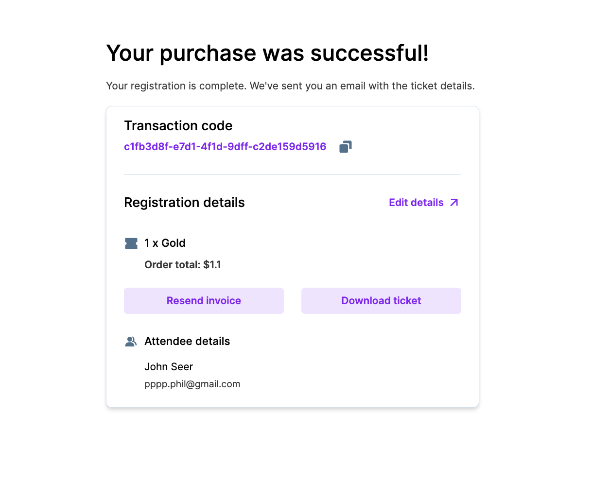 The UI elements for this checkout are not customizable but the payment processing will be the same as that for other options. On the checkout UI, you must use the same details that you’ve entered in the purchaser details form must be the same.