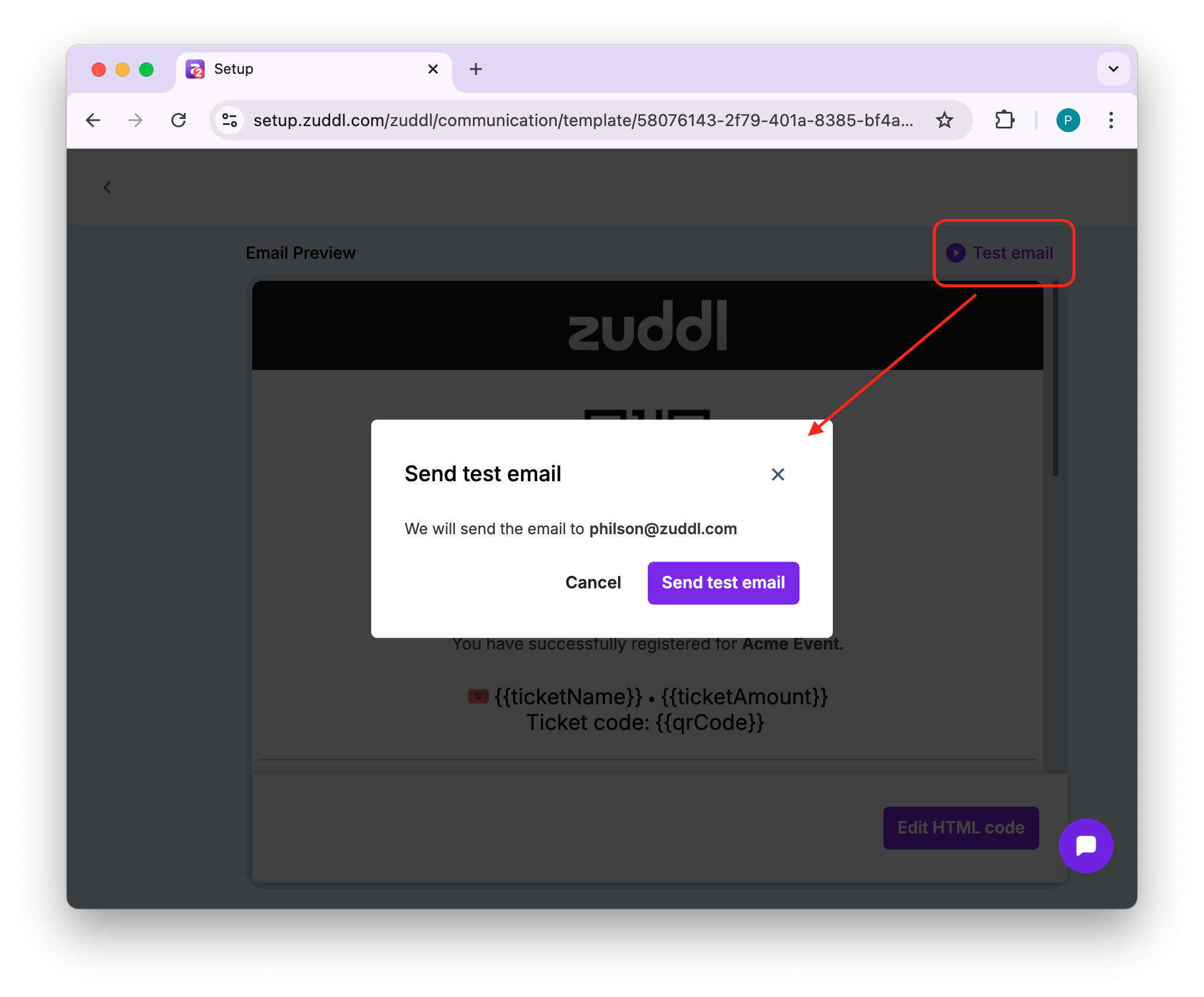 You can also send a test email to yourself by clicking the Test email option with the email template preview