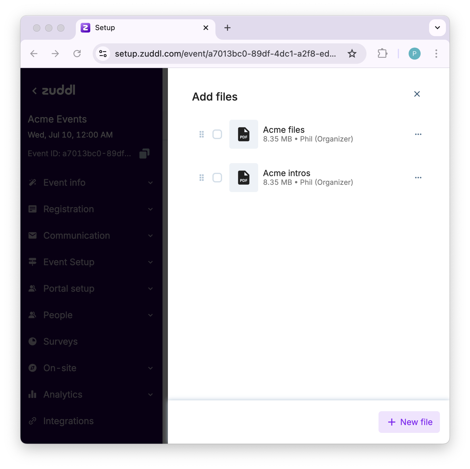 Once added, you can choose to publish files to attendees by selecting them. To publish files