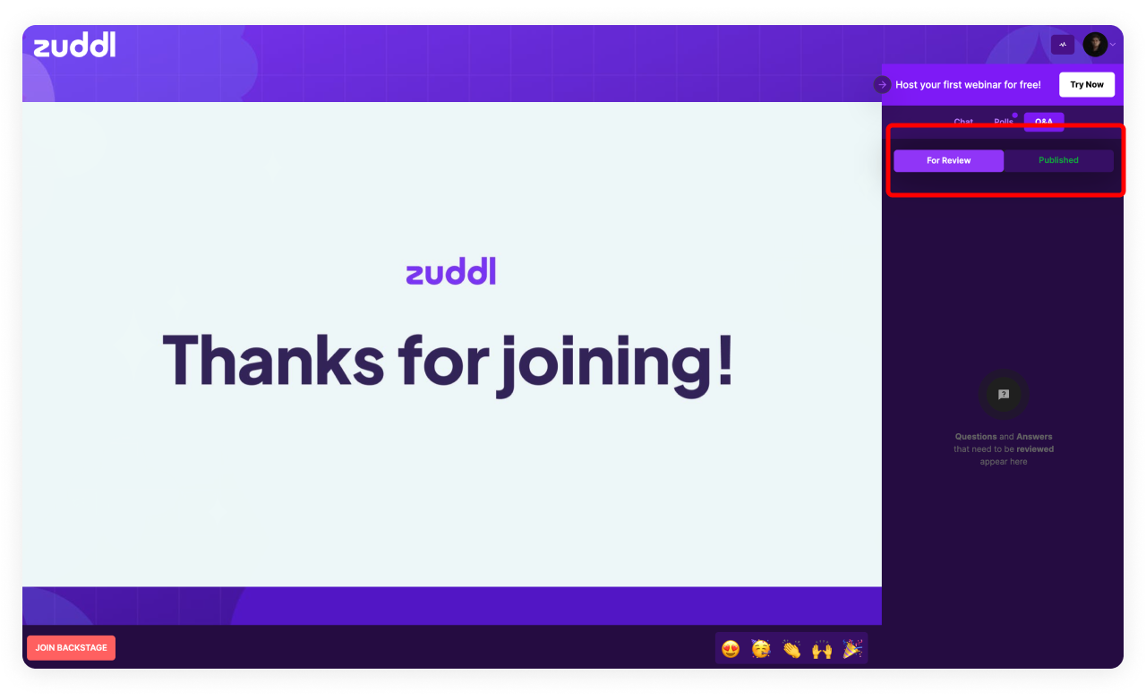 Once enabled, your audience can ask your speakers questions during the webinar.