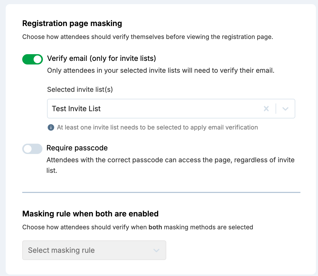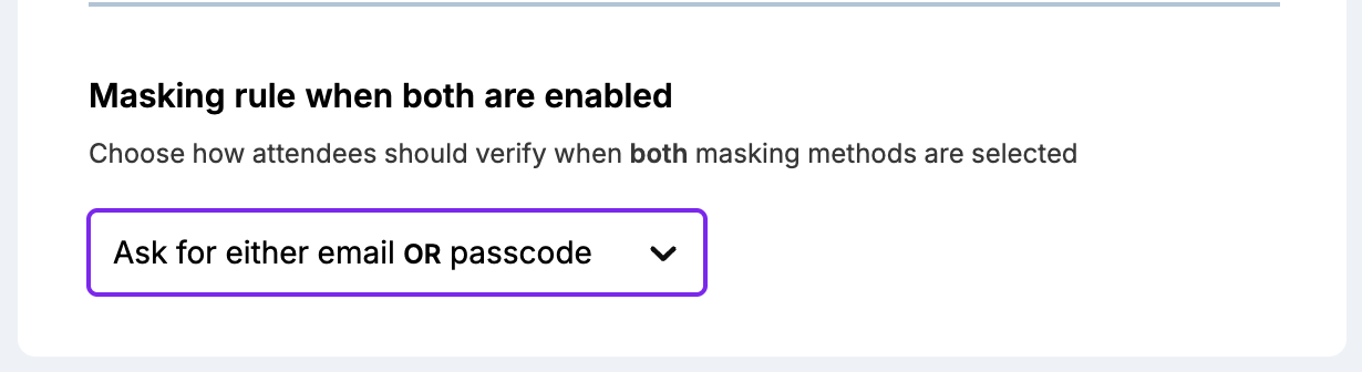 Ask for both email AND passcode: requires both email and passcode to be entered by the attendees.
