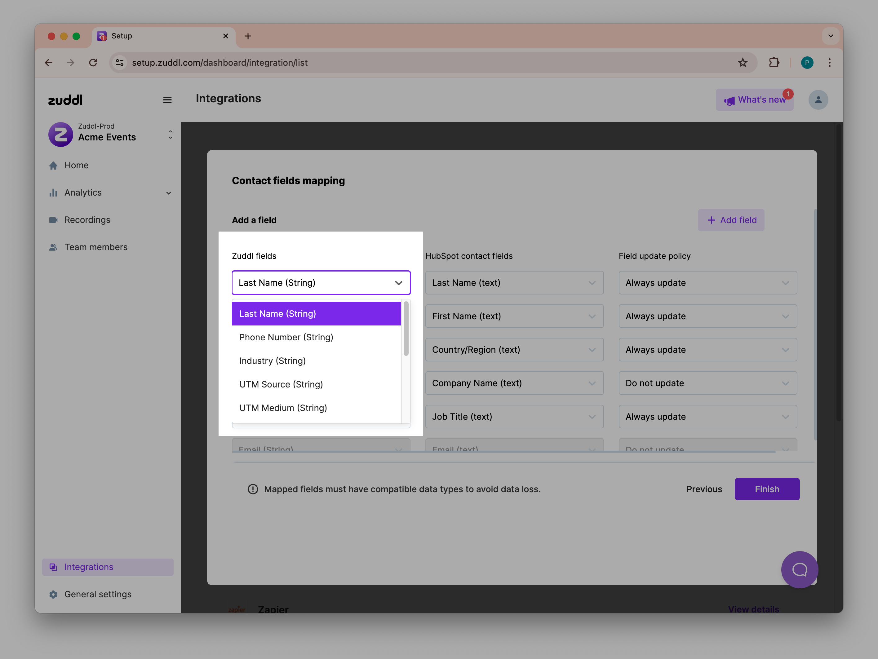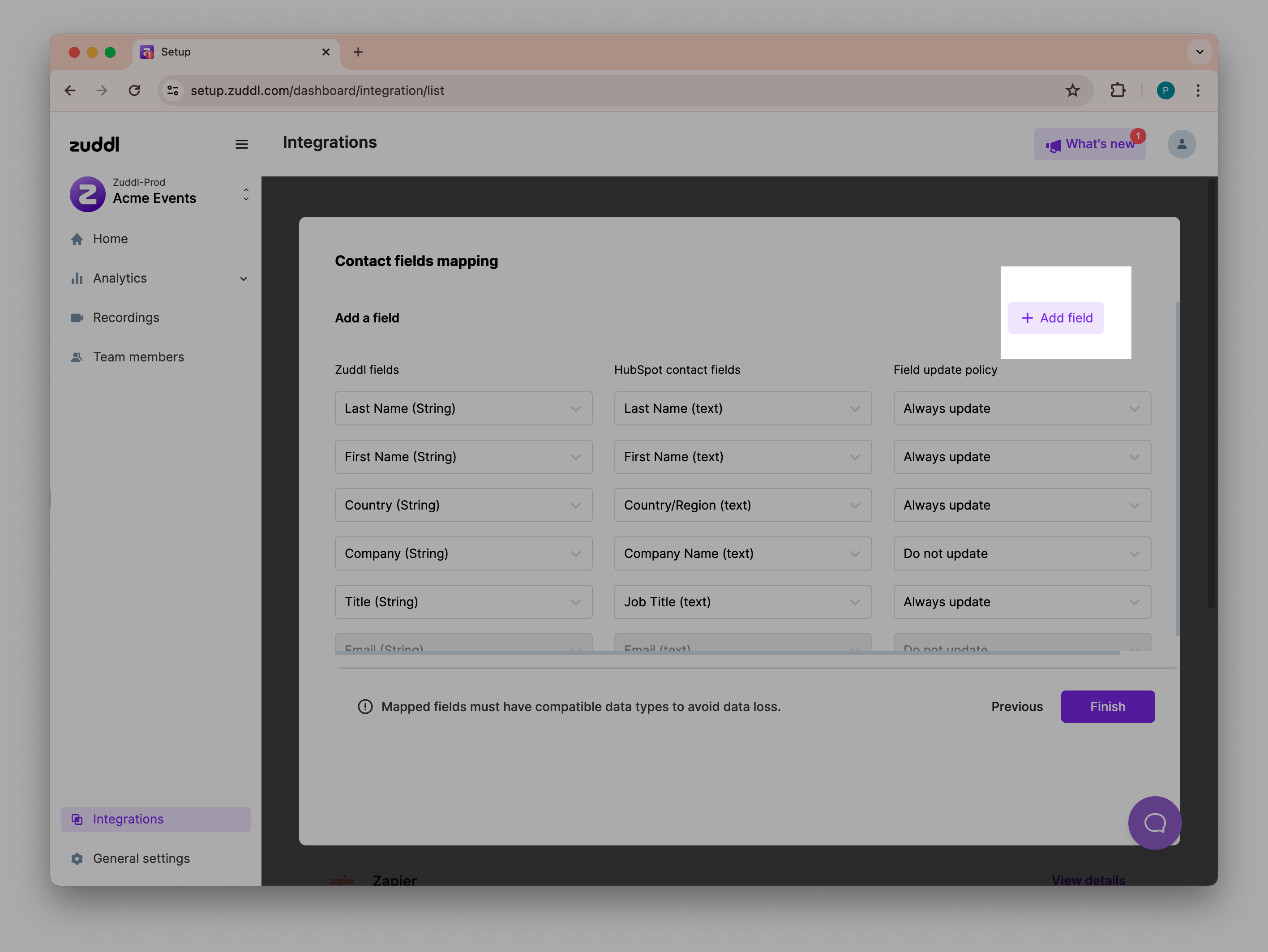 After installation, you must map Zuddl fields to HubSpot at the org level.