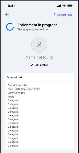 The scanned text field is also shown along with the profile till the enrichment is complete. This helps you get some information about the lead.