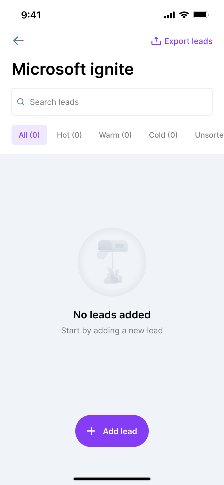 Click on +Add leads button. This opens the scan screen to scan and start capturing.