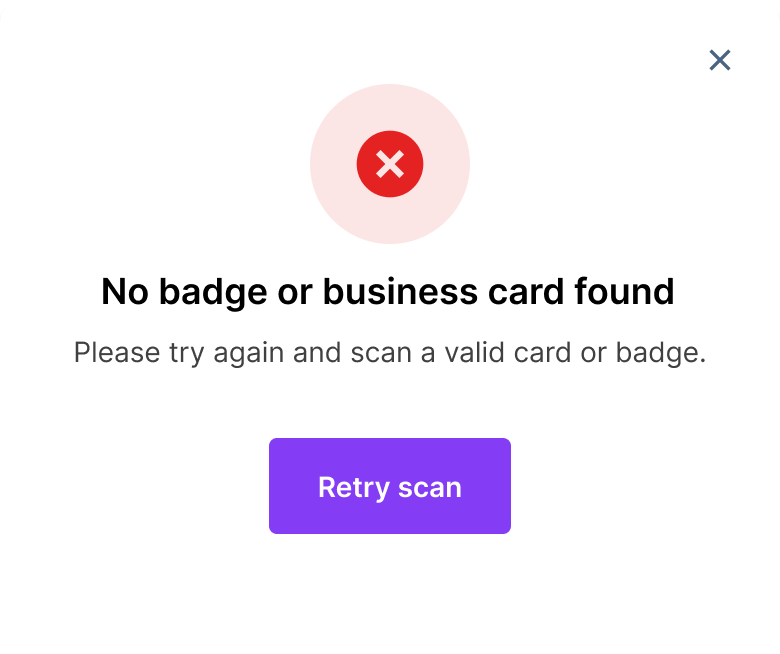 You can retry capturing the badge by clicking the Retry scan button. This option also appears when no card is detected by the app while scanning.
