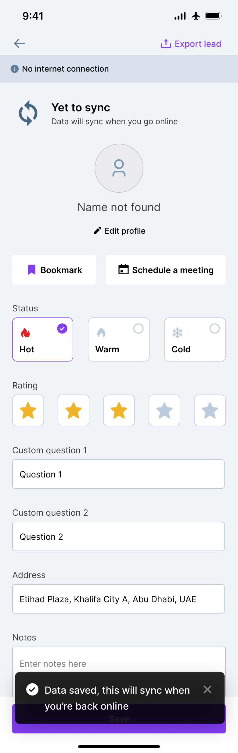 In case you face an internet disruption, enrichment will be paused till the network is restored and any enriched data will be only available when you are back online. However, you can still perform the following functions