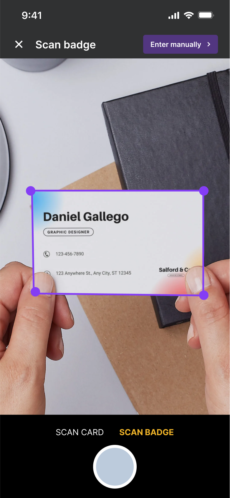 Often event badges displays only first name, last name, and in some cases title or company name. But in order for you to successfully capture a lead, you require details such email address or phone number.