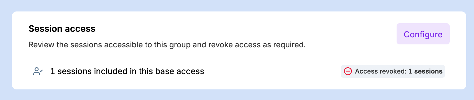 When additional sessions are added to a custom group, the section shows access granted for # additional sessions.