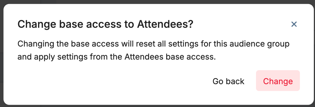 Click on an audience under the Base access section on the left, let's say Attendees.