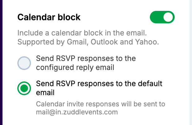 Send RSVP responses to the default email (default): mail@in.zuddlevents.com