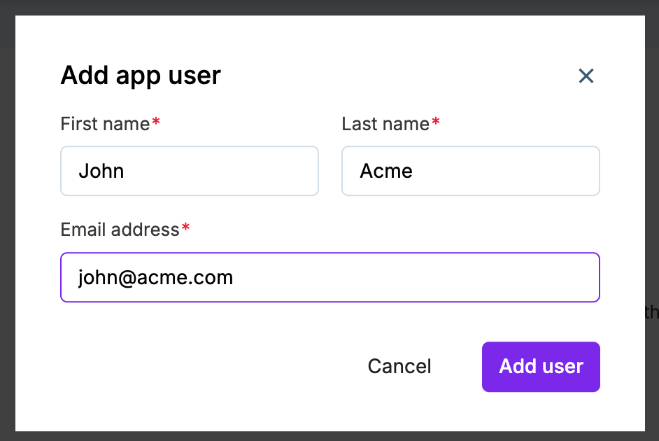 - On the add new app user form, enter the following: