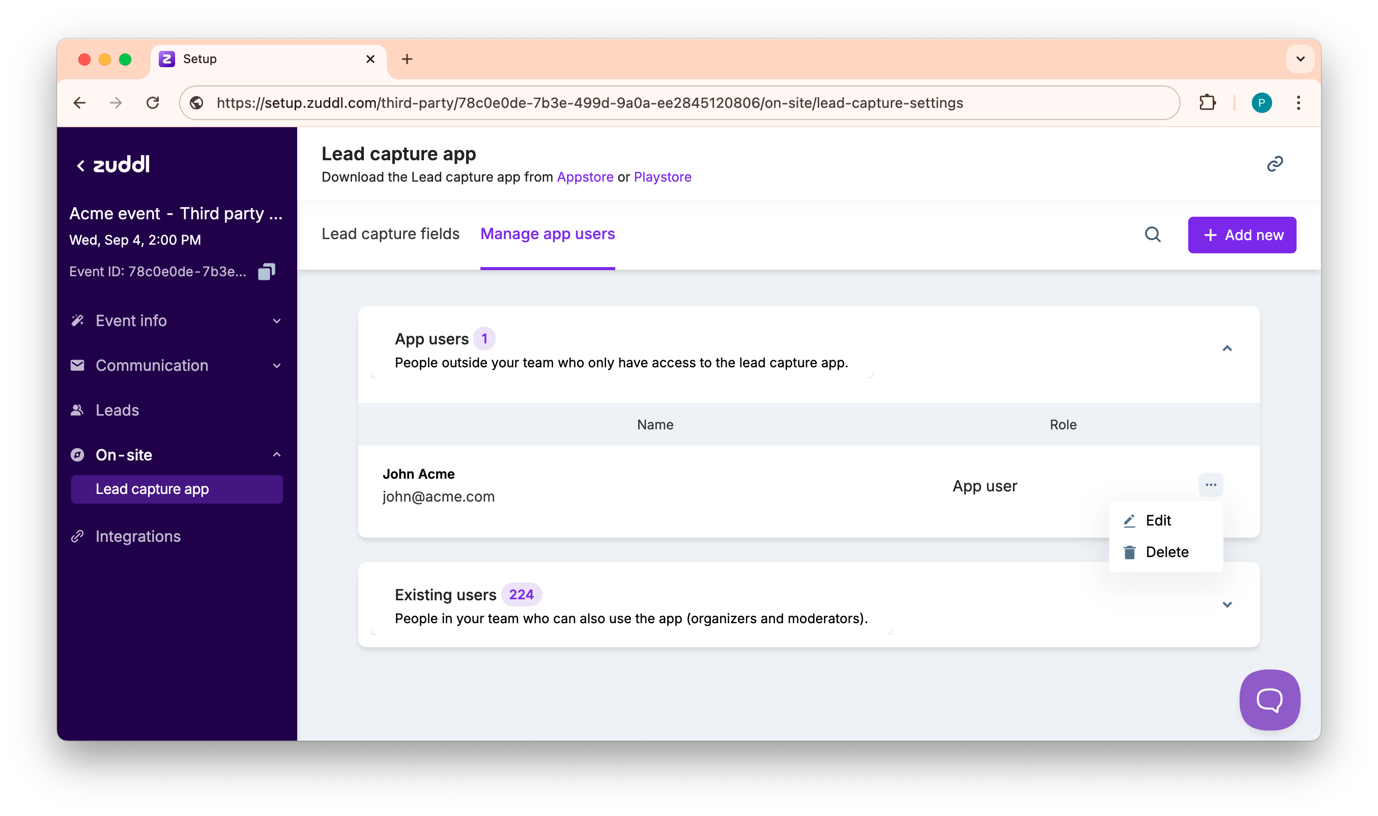 How to Manage App Users for a Third-party Events