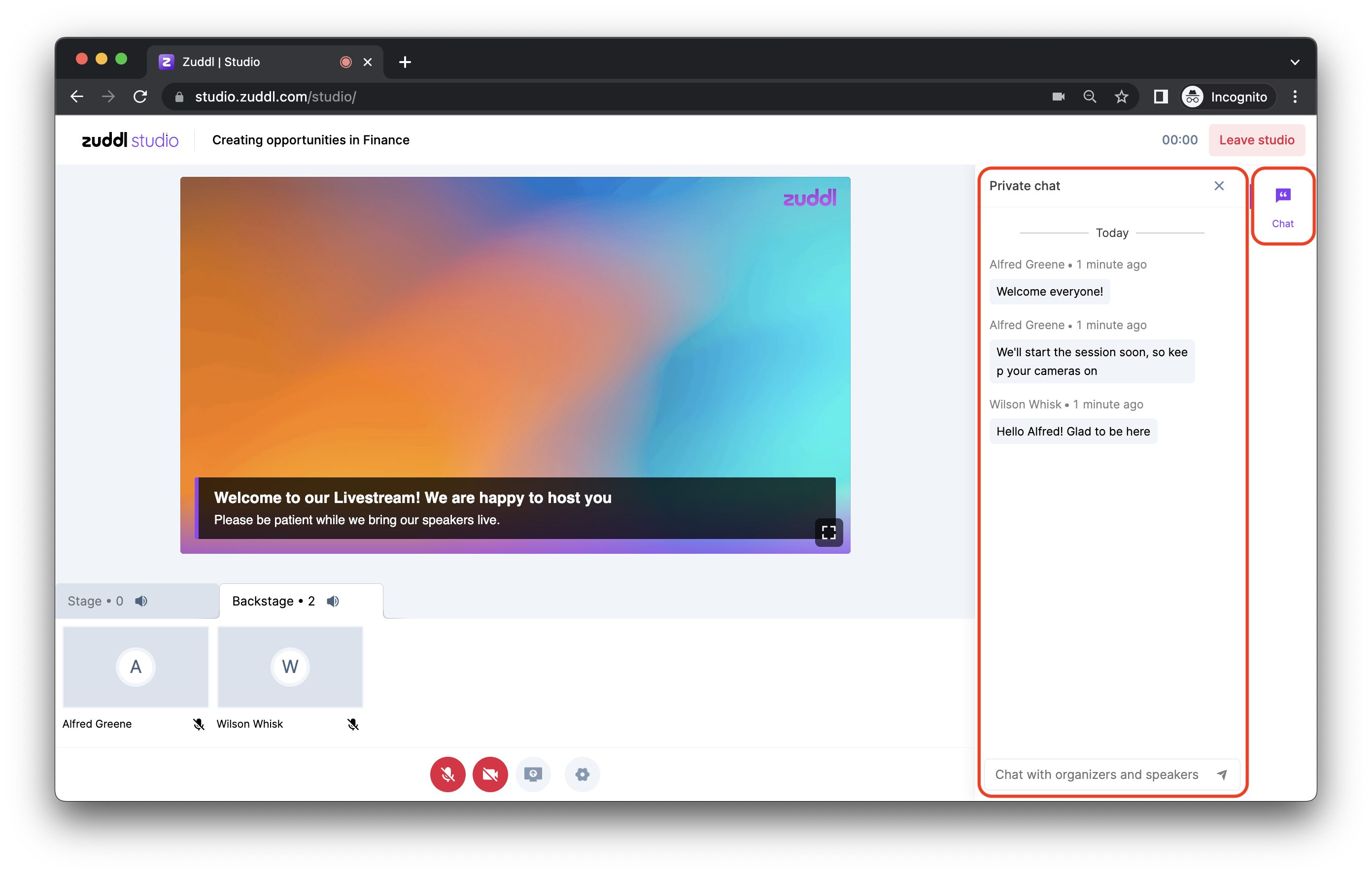 How to Use Backstage Chat in Zuddl Studio
