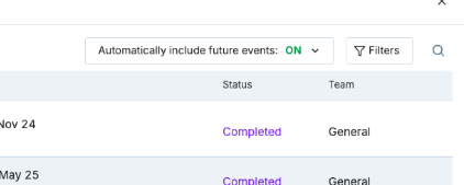 When ‘Off” in any event type (Webinar, Field events, etc.,) tab, any newly created event of that type will not be included automatically in that webhook. The endpoint will not receive the data about the subscribed event-specific actions for the newly created event.