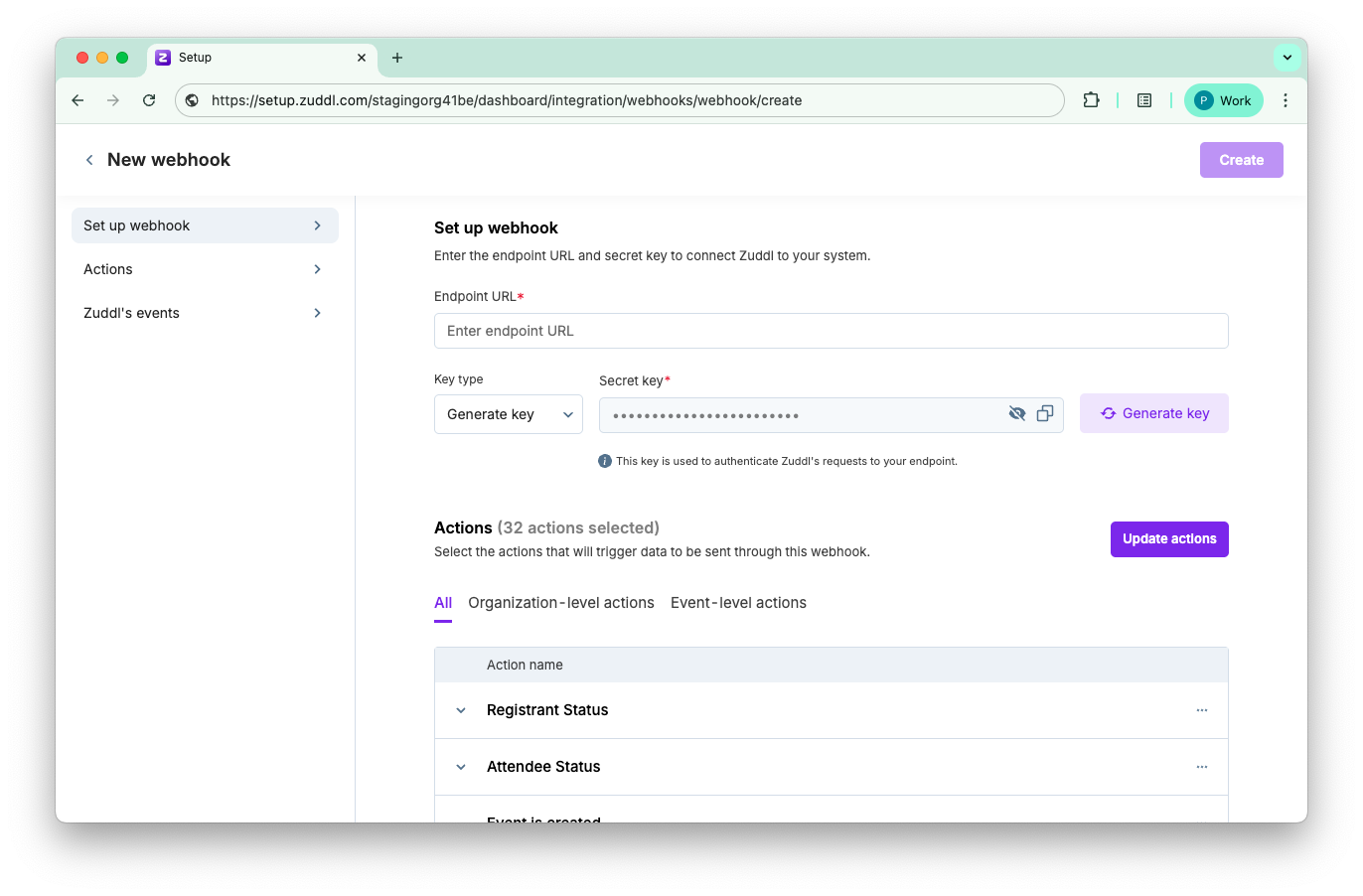 Follow the steps mentioned below to create a webhook from your Zuddl dashboard.