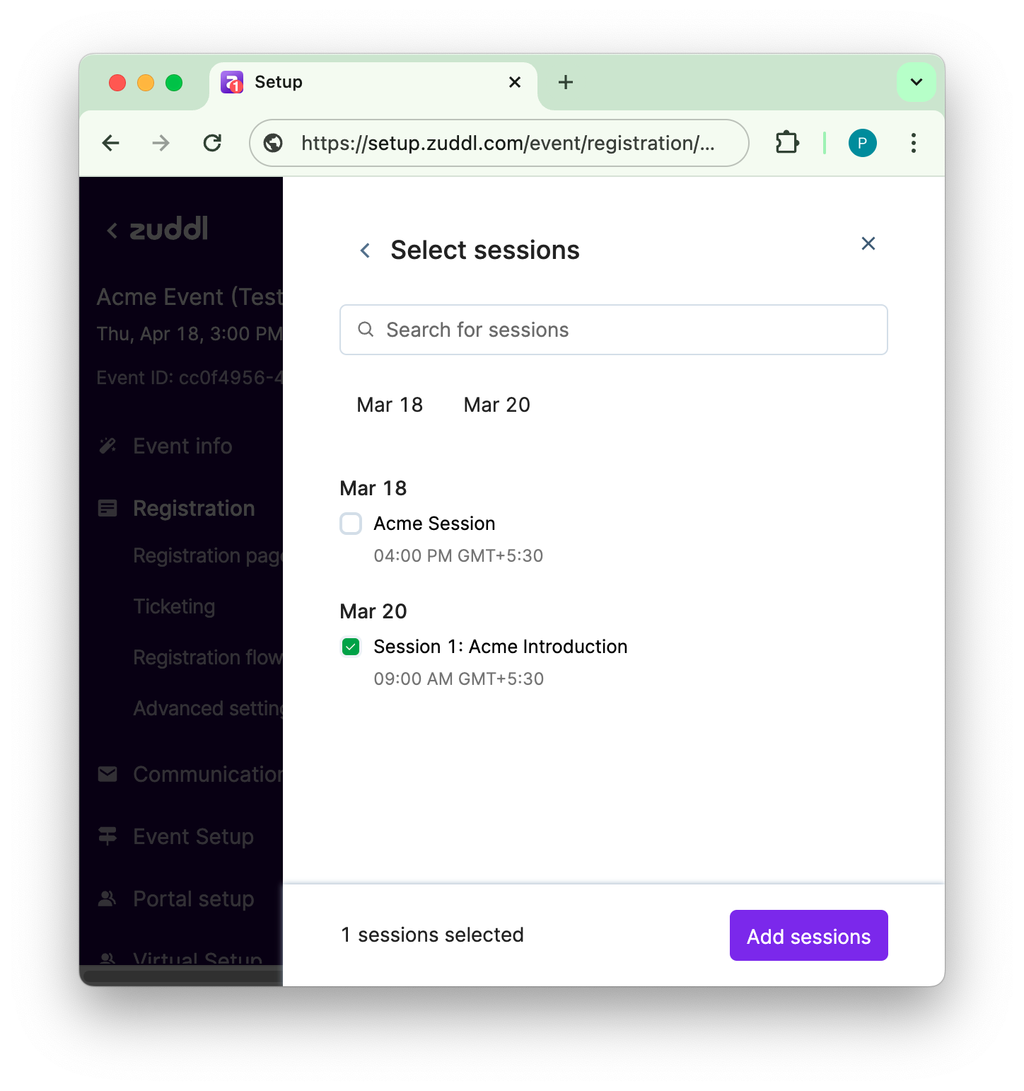 - A single user can't select sessions with conflicting time. Ensure that all your session timings and conditions match with each other.
