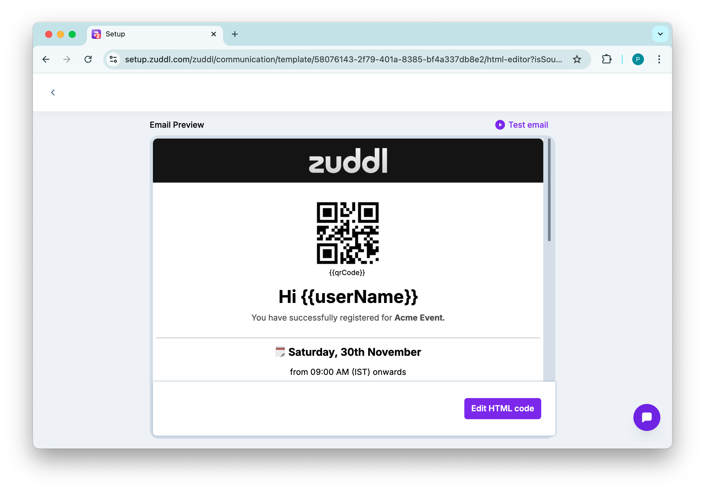 Edit: The edit option takes you through the usual email editing flow with the Test email and Edit HTML code option. Learn how to edit HTML code for email.