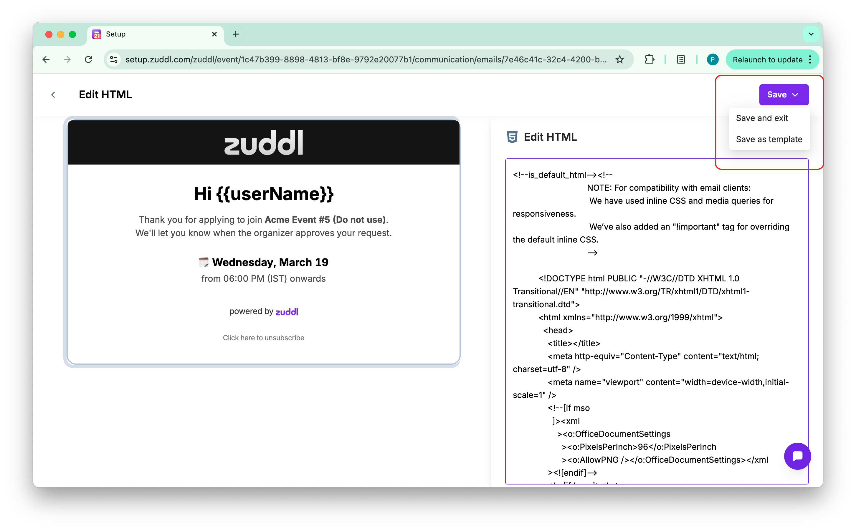 You can edit the default Zuddl email template to customize the email according to your requirements.