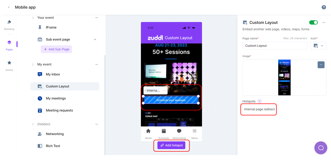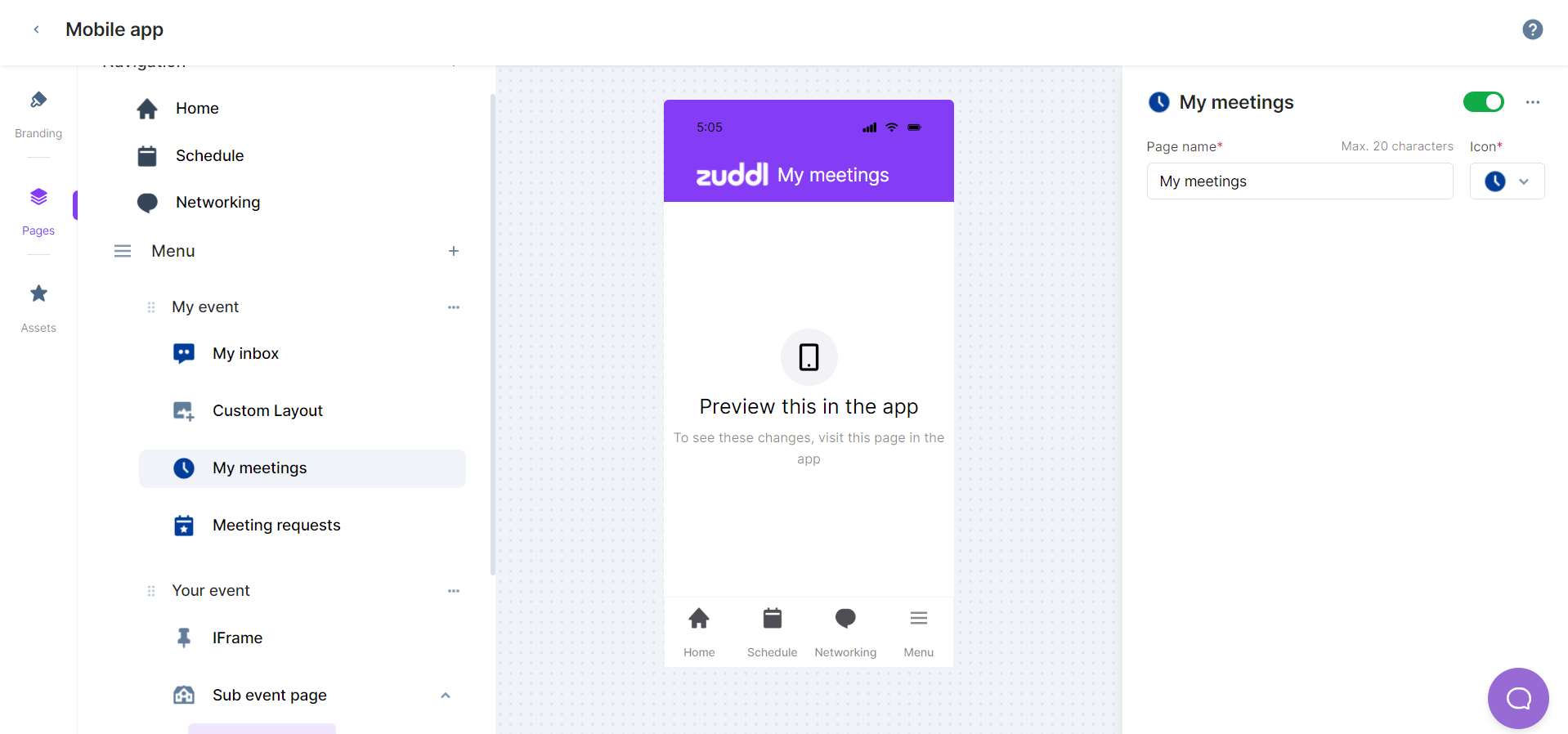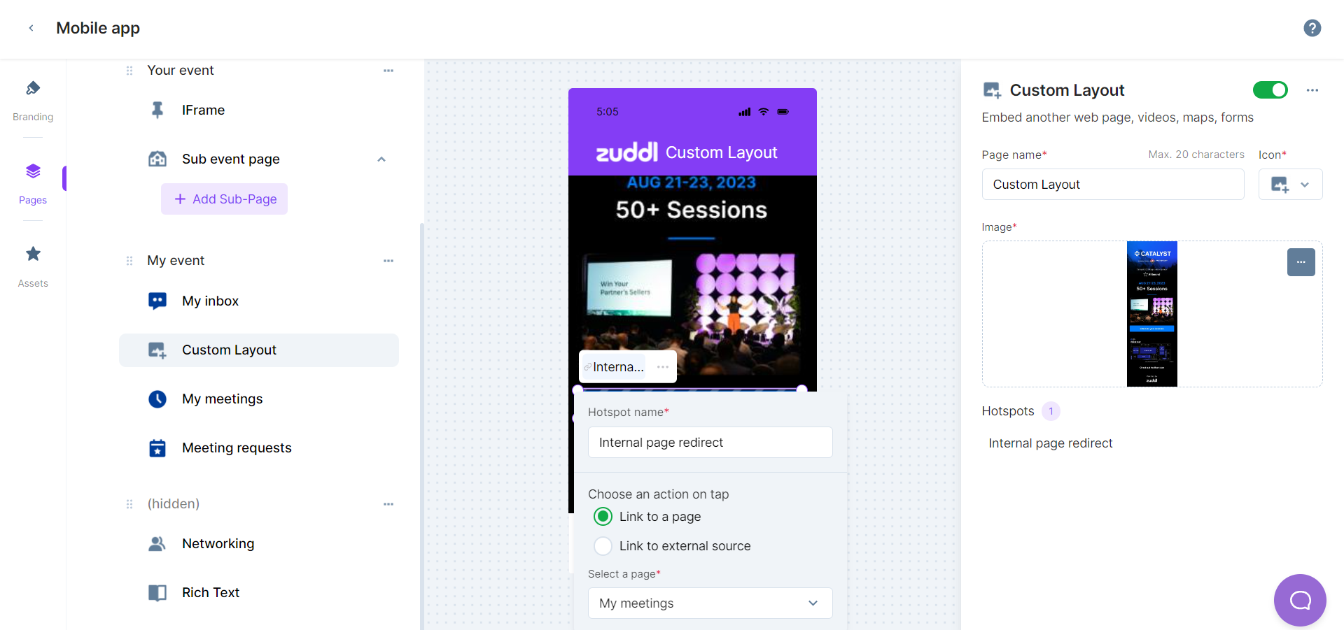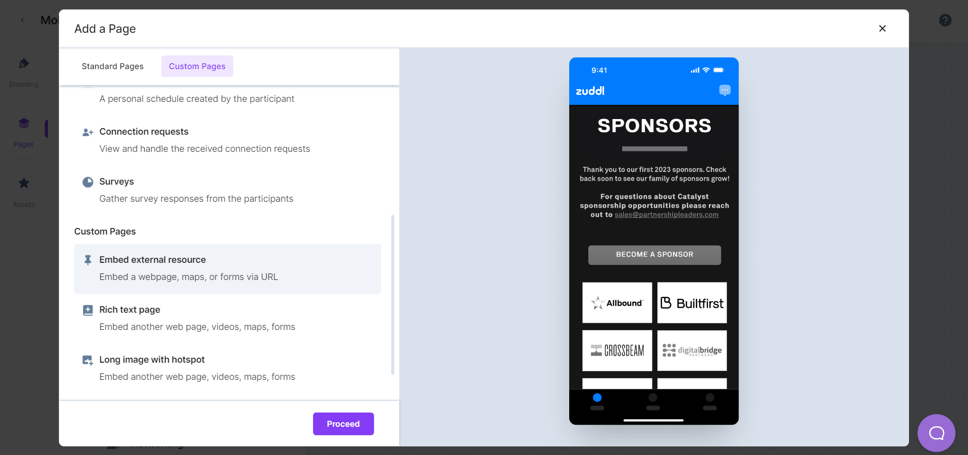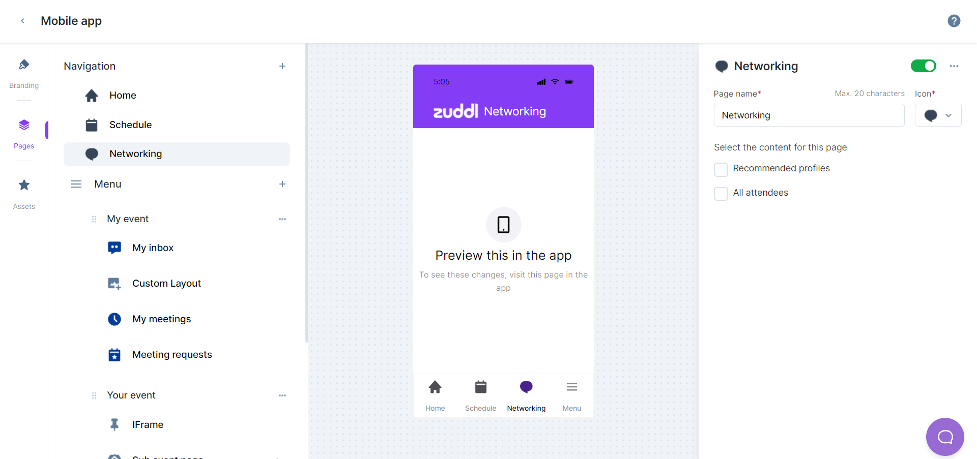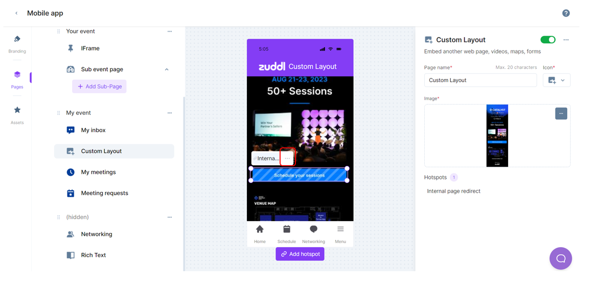 Zuddl Mobile app includes a mix of standard pages provided by Zuddl and custom pages like iFrame or rich-text pages to meet specific requirements and provide a unique user experience.