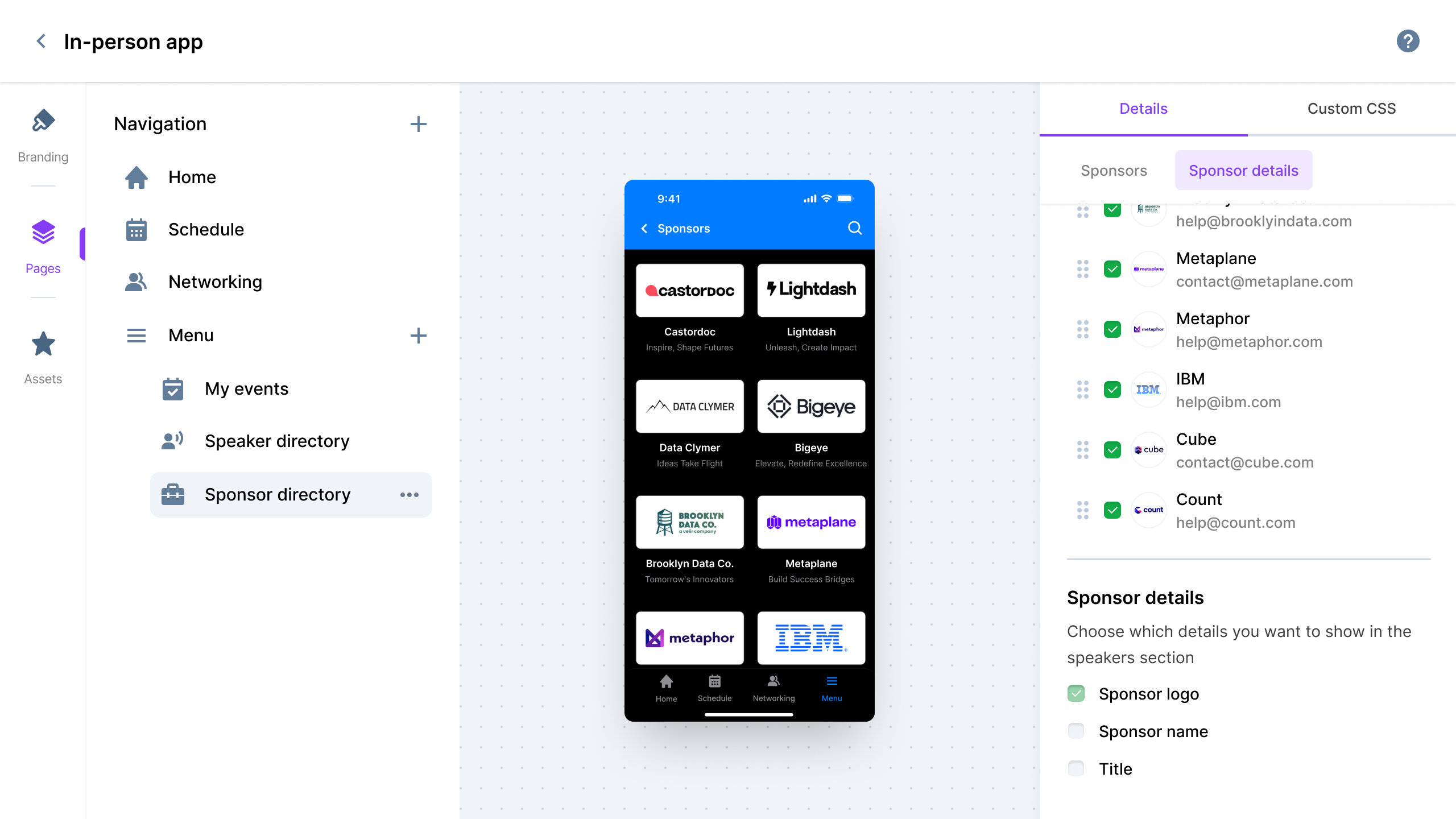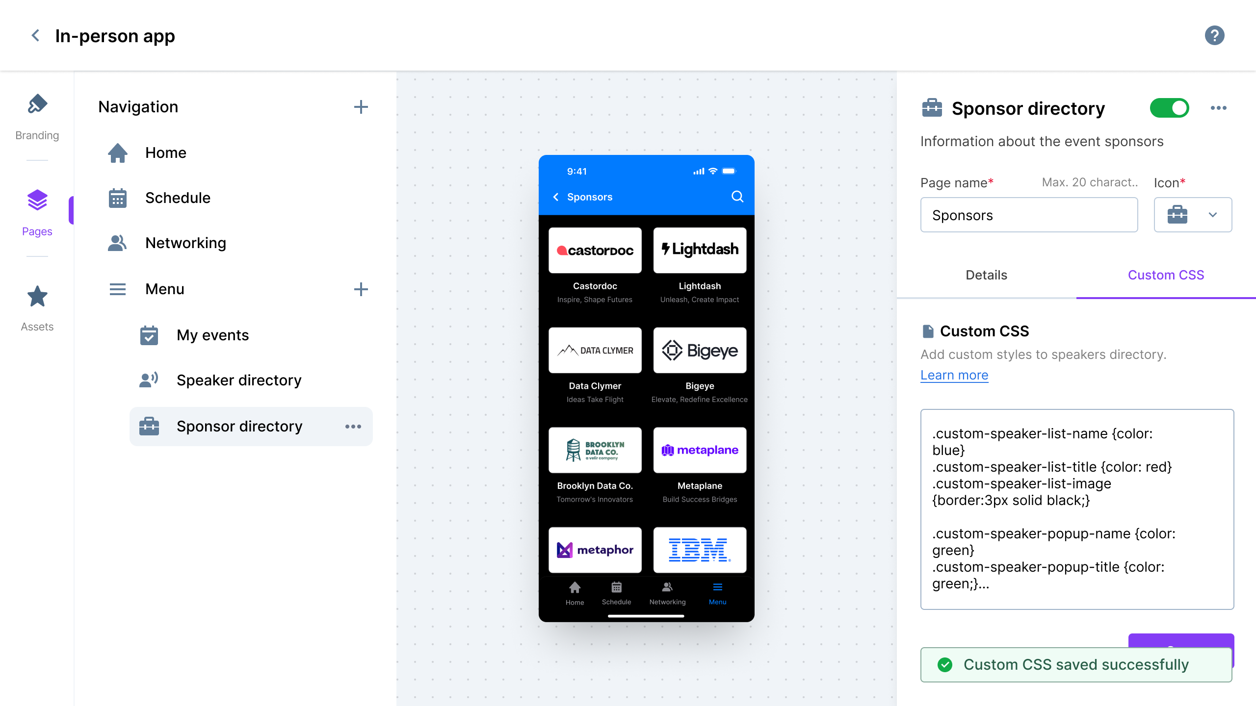 You can easily display your event sponsor on the mobile app and customize it using CSS.