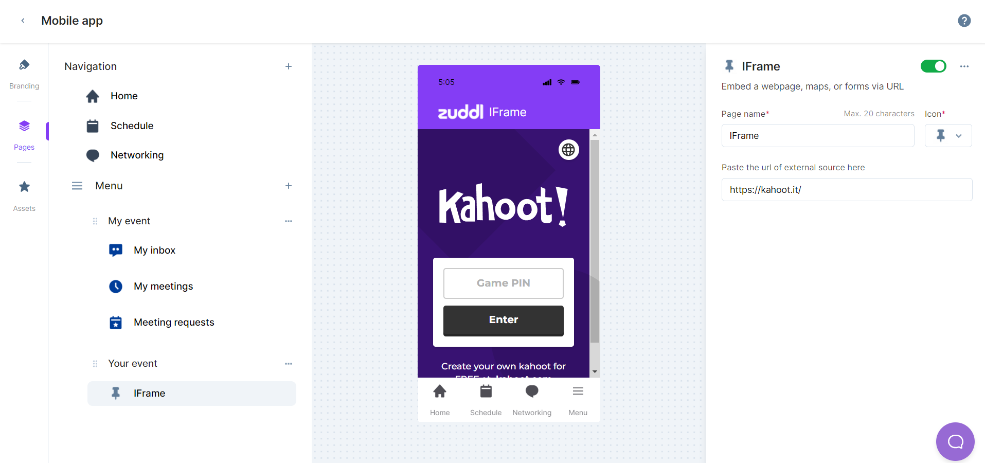 Now, paste the URL link in the Paste the URL of the external source here text box in the iFrame form, and the app gets updated automatically.