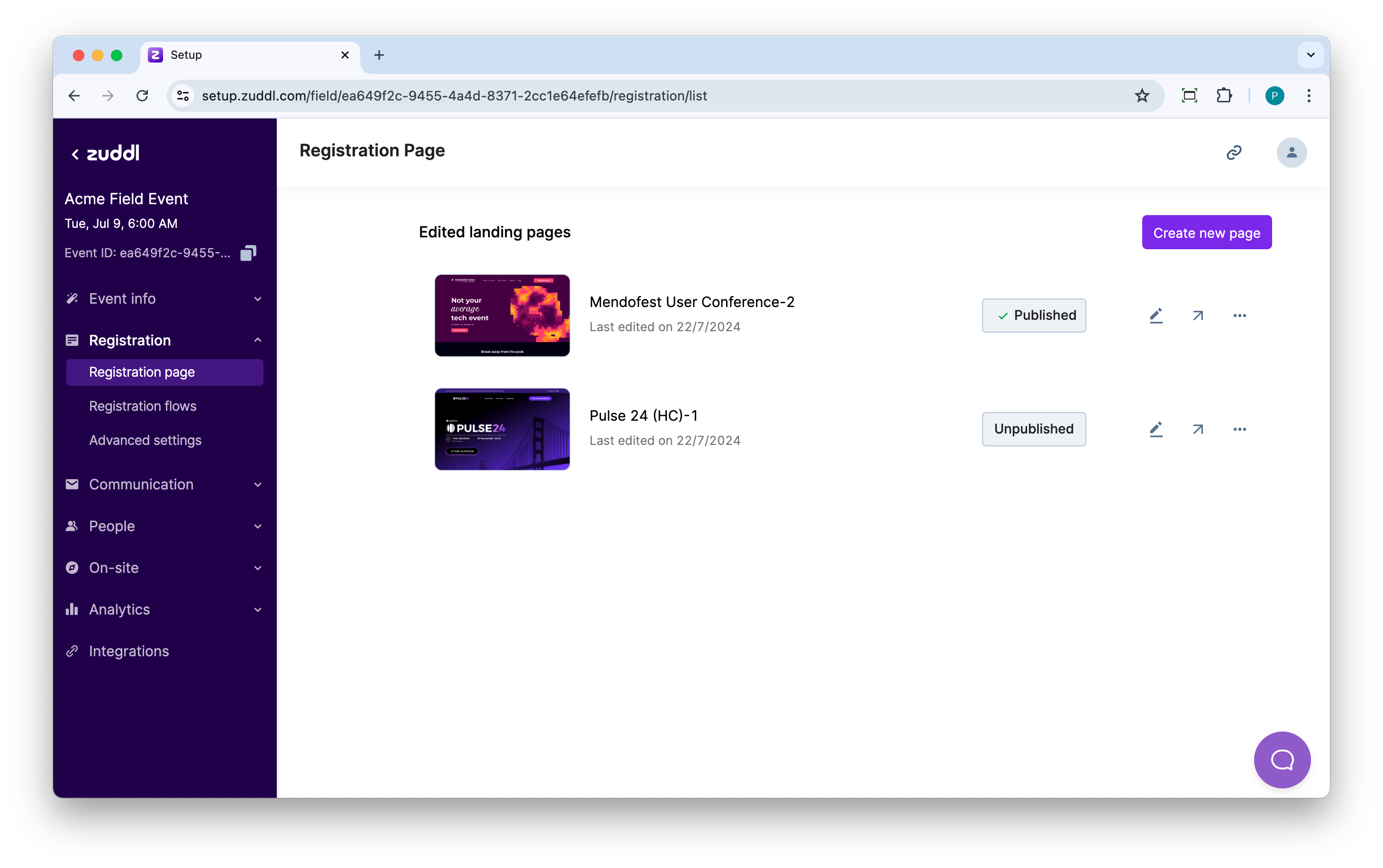 This guide walks you through the steps to create a registration page for your event. While the landing page builder can be used by anyone, folks with web designing experience can use this feature.