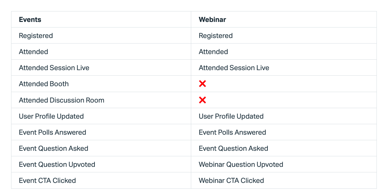 The activity Registered and Attended are passed on to Pardot in real-time. However, the other activities are only passed one hour after the event’s end time.