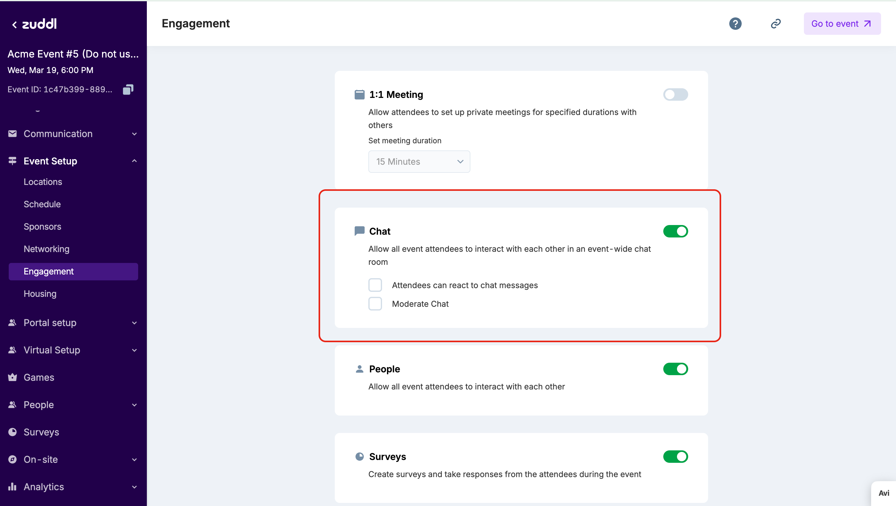 How to Enable Chat for an In-person Event in Zuddl