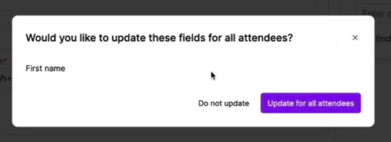 Update for all attendee: Will update the field value for all attendees based on the changes made for the first attendee.