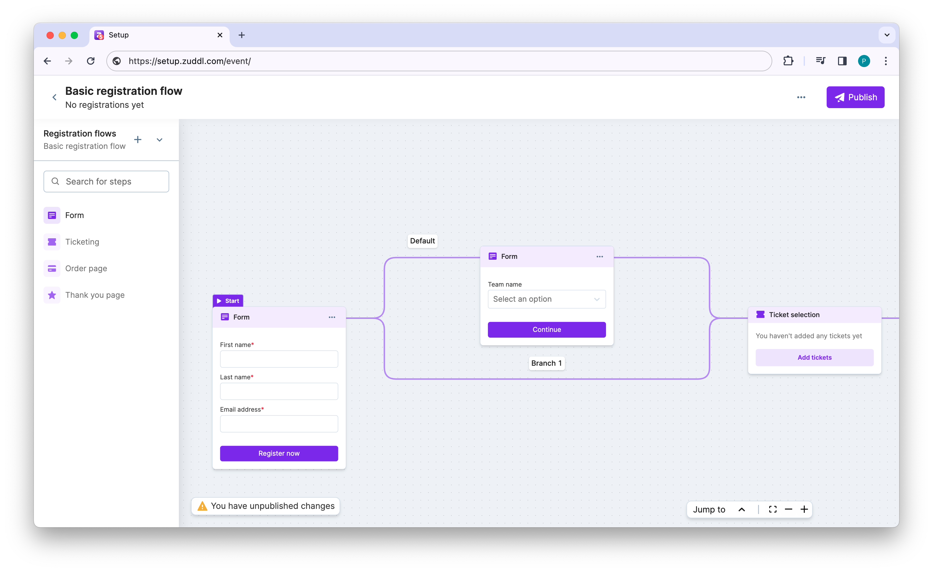 Publishing the flow makes it visible to attendees who plan to register for your event. After you have made all the changes, you can click the Publish button.