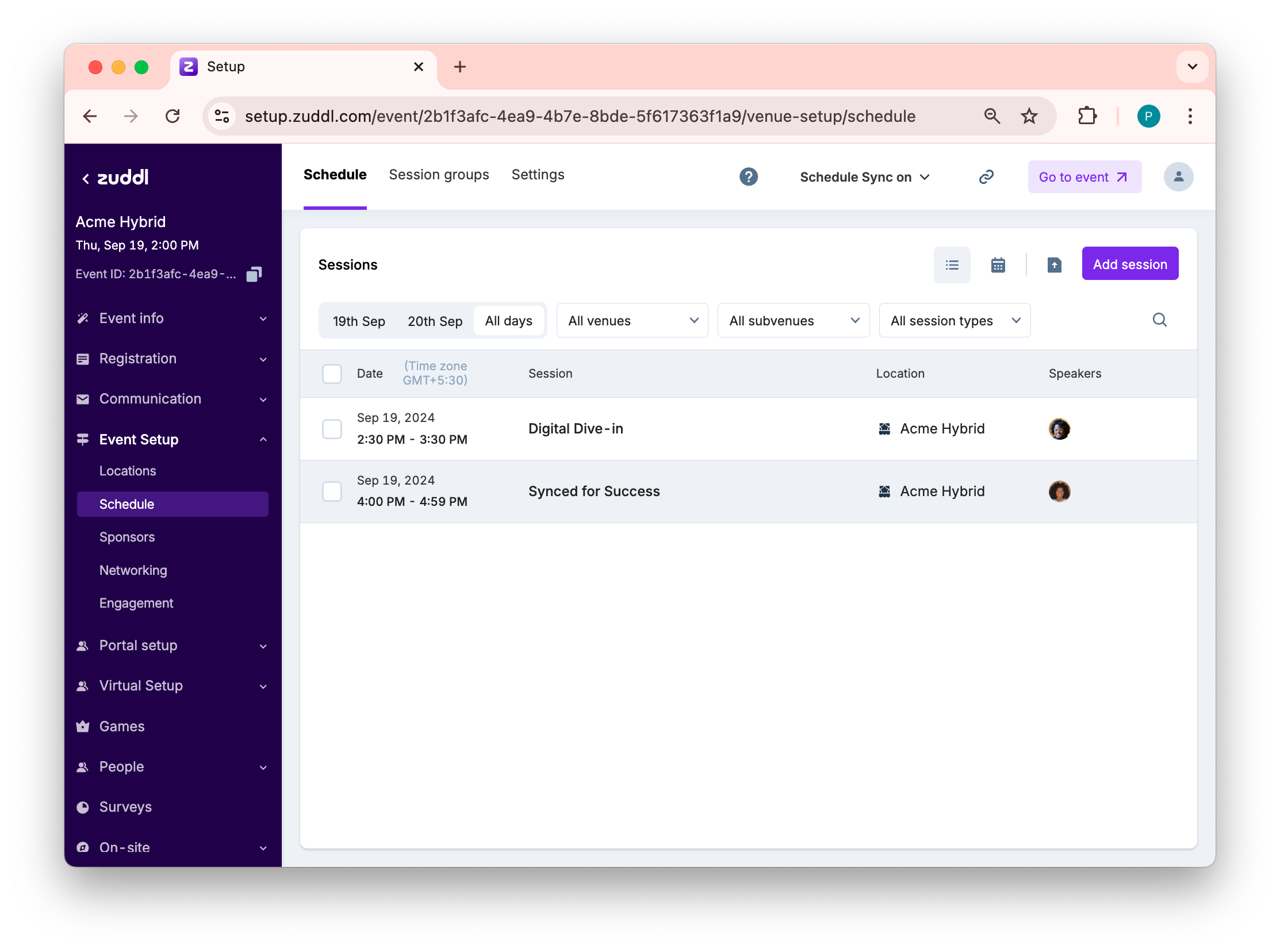 How to Set up a Schedule for a Hybrid Event in Zuddl