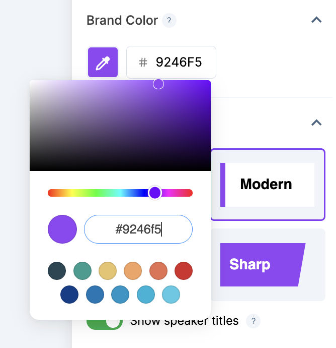 To select your brand color, open the Branding tab in the sidebar and scroll to the Brand Color section.