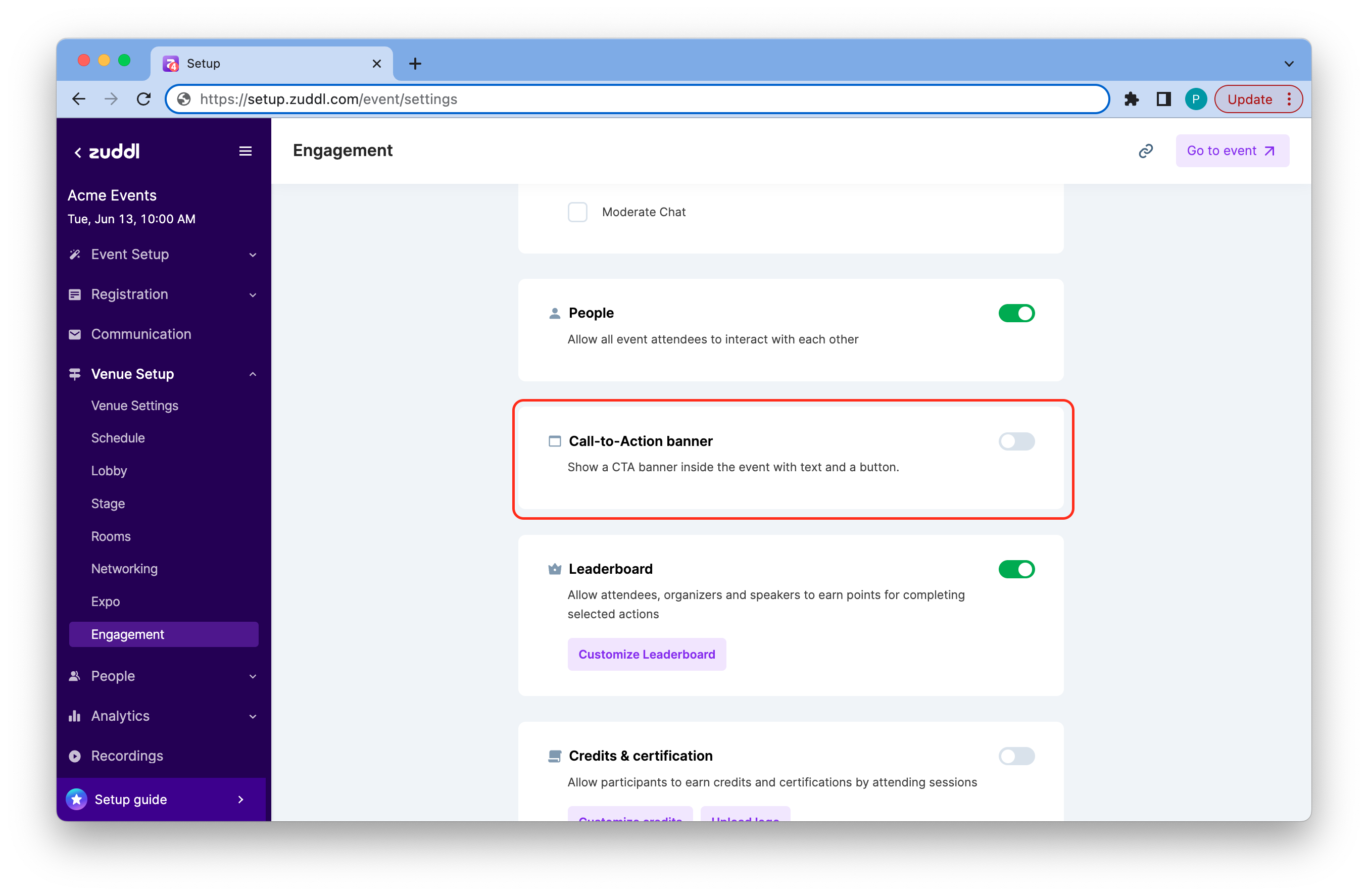 How to Enable Call-to-Action for a Virtual Event in Zuddl