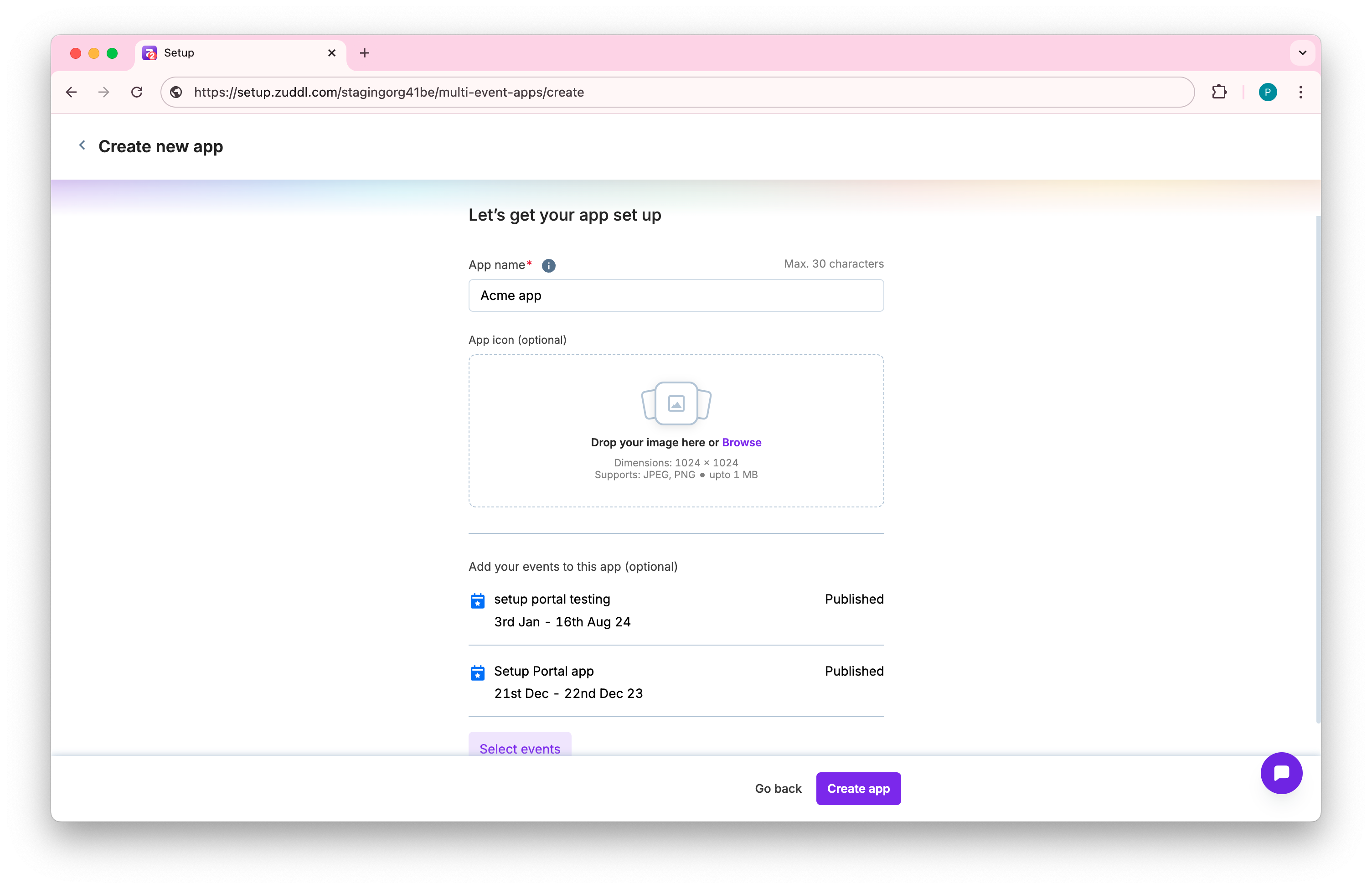 You can create multiple event mobile apps within your Zuddl team to showcase a specific set of events inside the app to your attendees.