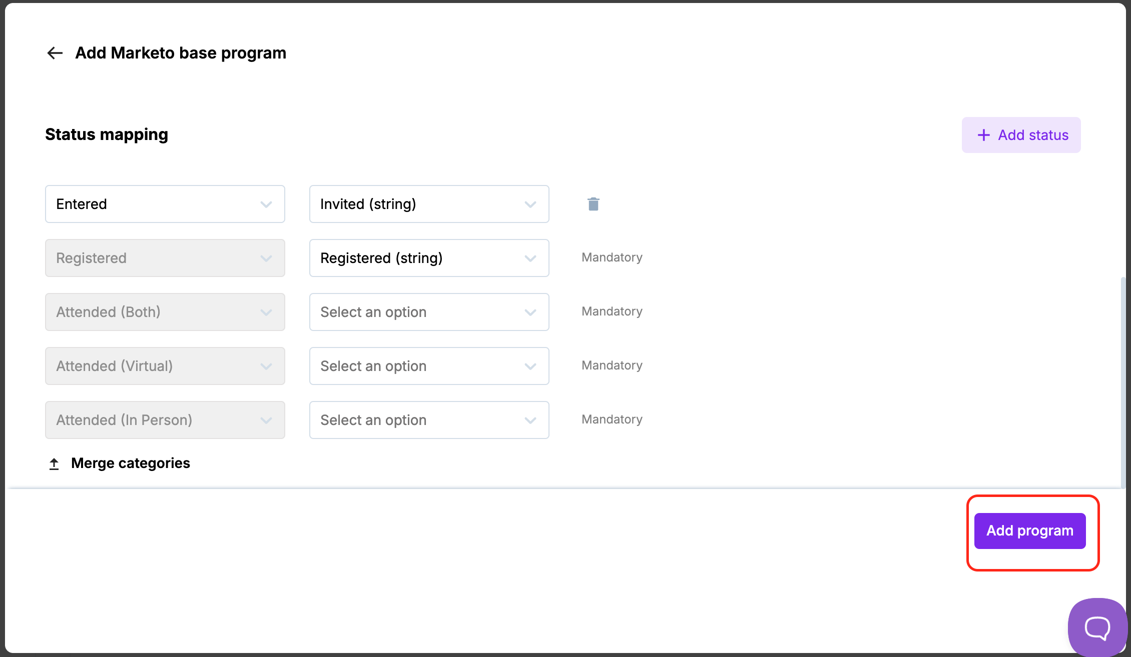 The program member status mapping will be the same for all programs created out of the base program. You can also edit the mapping to your specific use-case at the time of event-level status mapping.