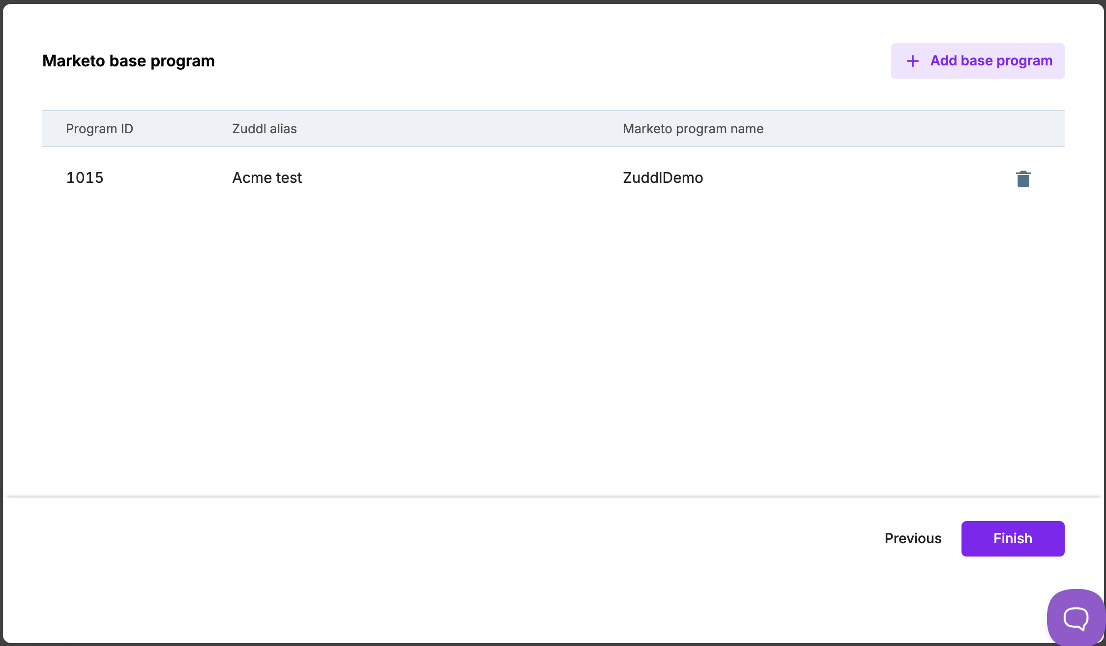 You can add more base program by clicking the +Add base program button. You can also delete an existing base program by clicking bin icon.
