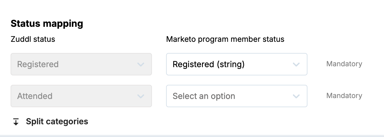 On the Status mapping page, map the Zuddl status fields to the corresponding Marketo program member status.