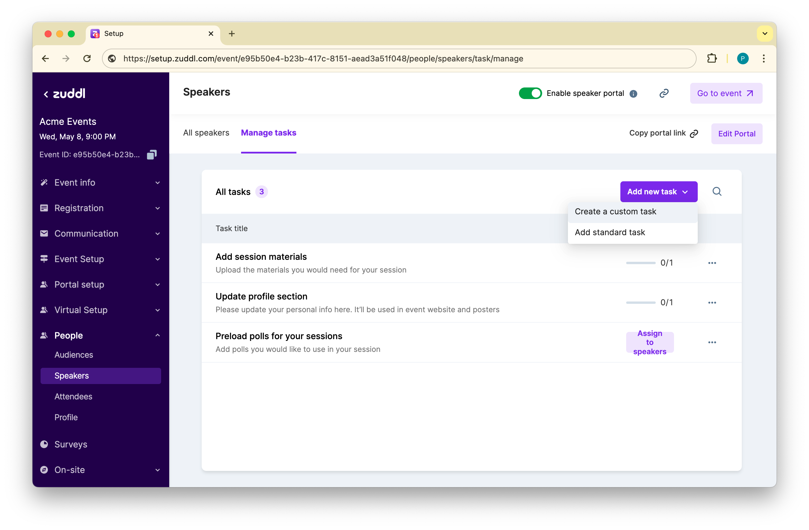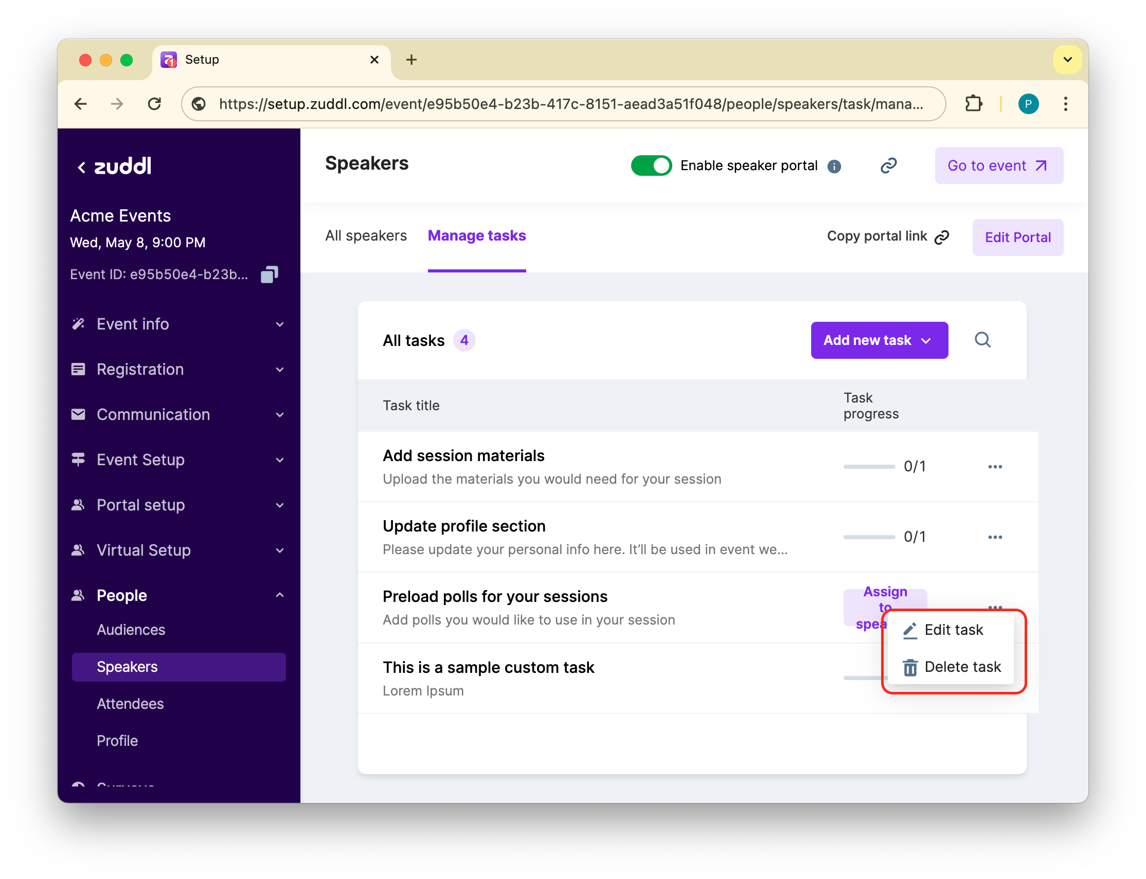 Create and Manage Custom Tasks for Hybrid Events on Zuddl