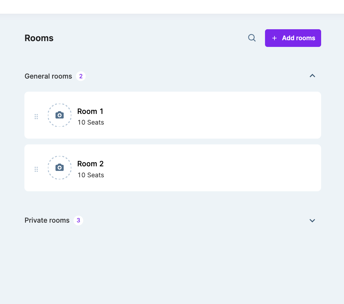 - Go to Venue setup > Rooms.