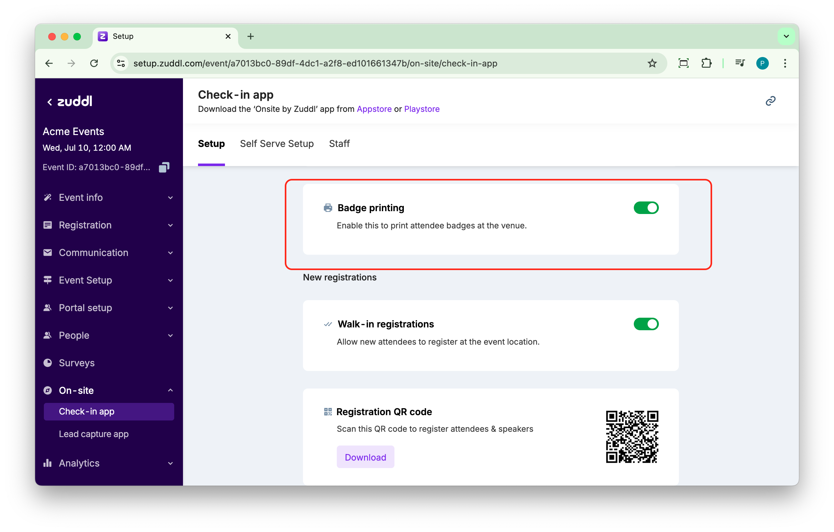 Toggle on Badge printing.