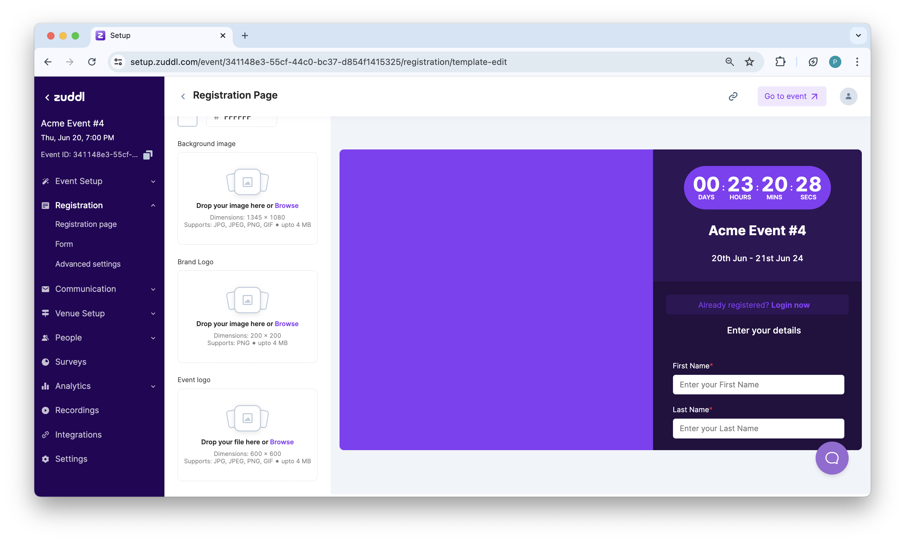 5. Upload an Event logo of 600x600 pixels in a .jpeg or .png file.