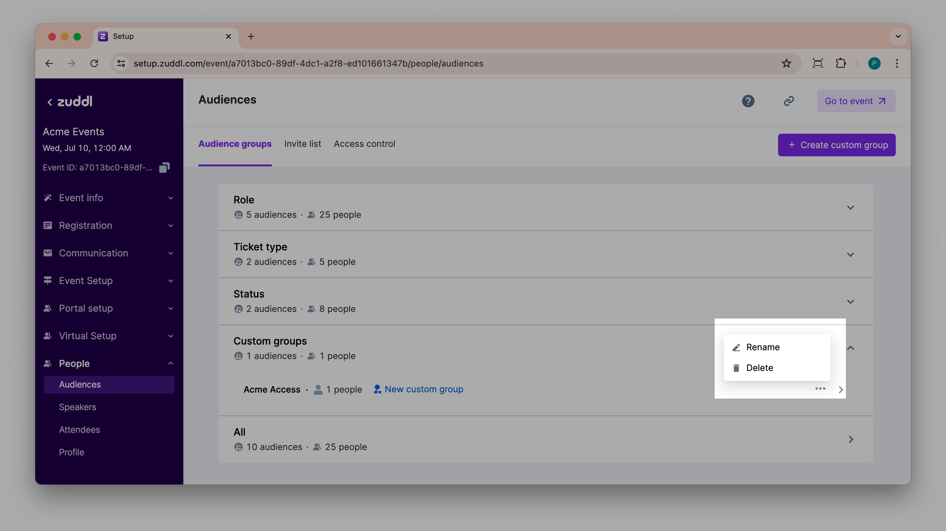 14. A new Custom groups section in the Audience Groups tab shows the list of custom groups created.