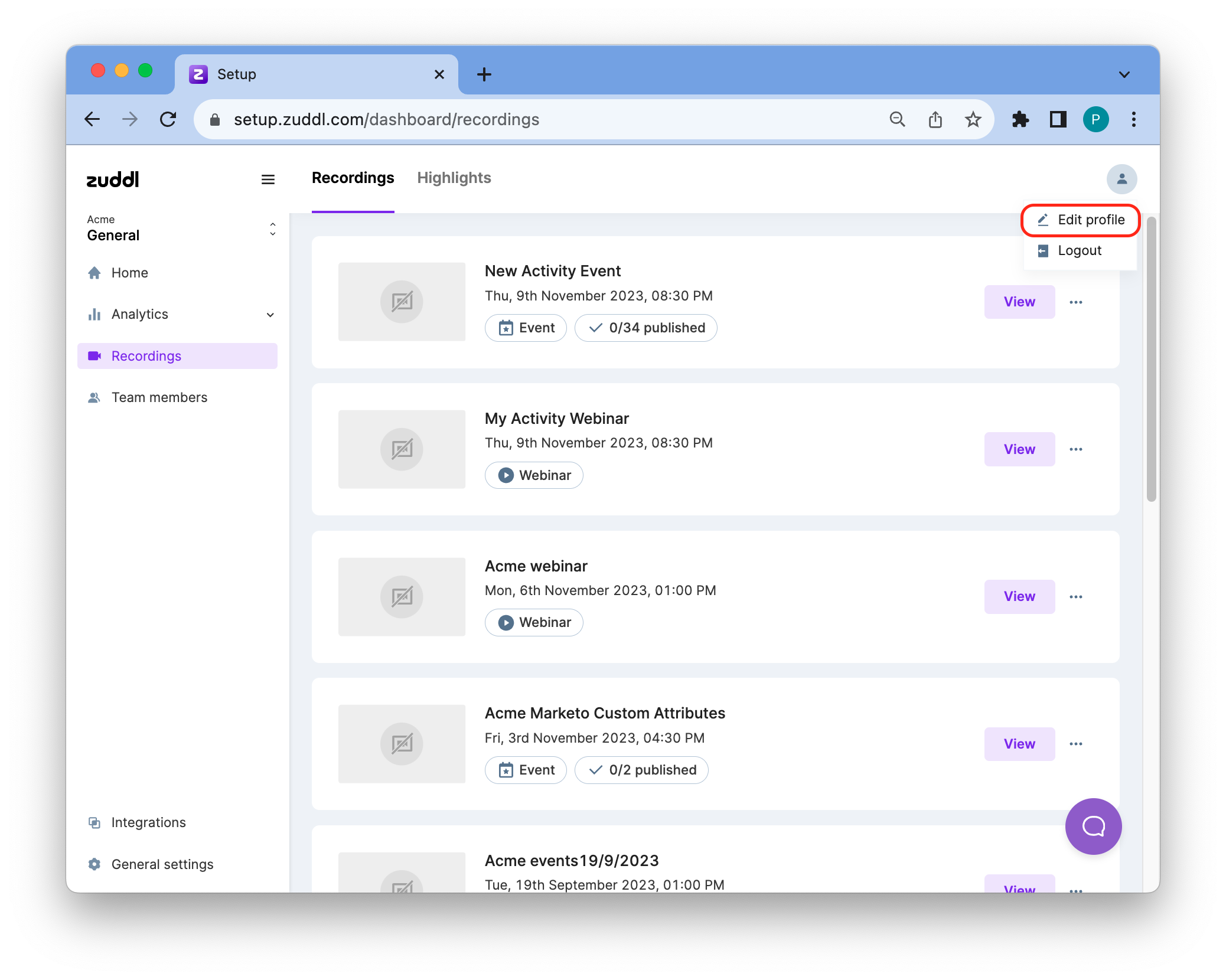 Your Zuddl account profile includes a profile picture, name, contact information, and professional details. This profile information can be edited from the Zuddl dashboard.