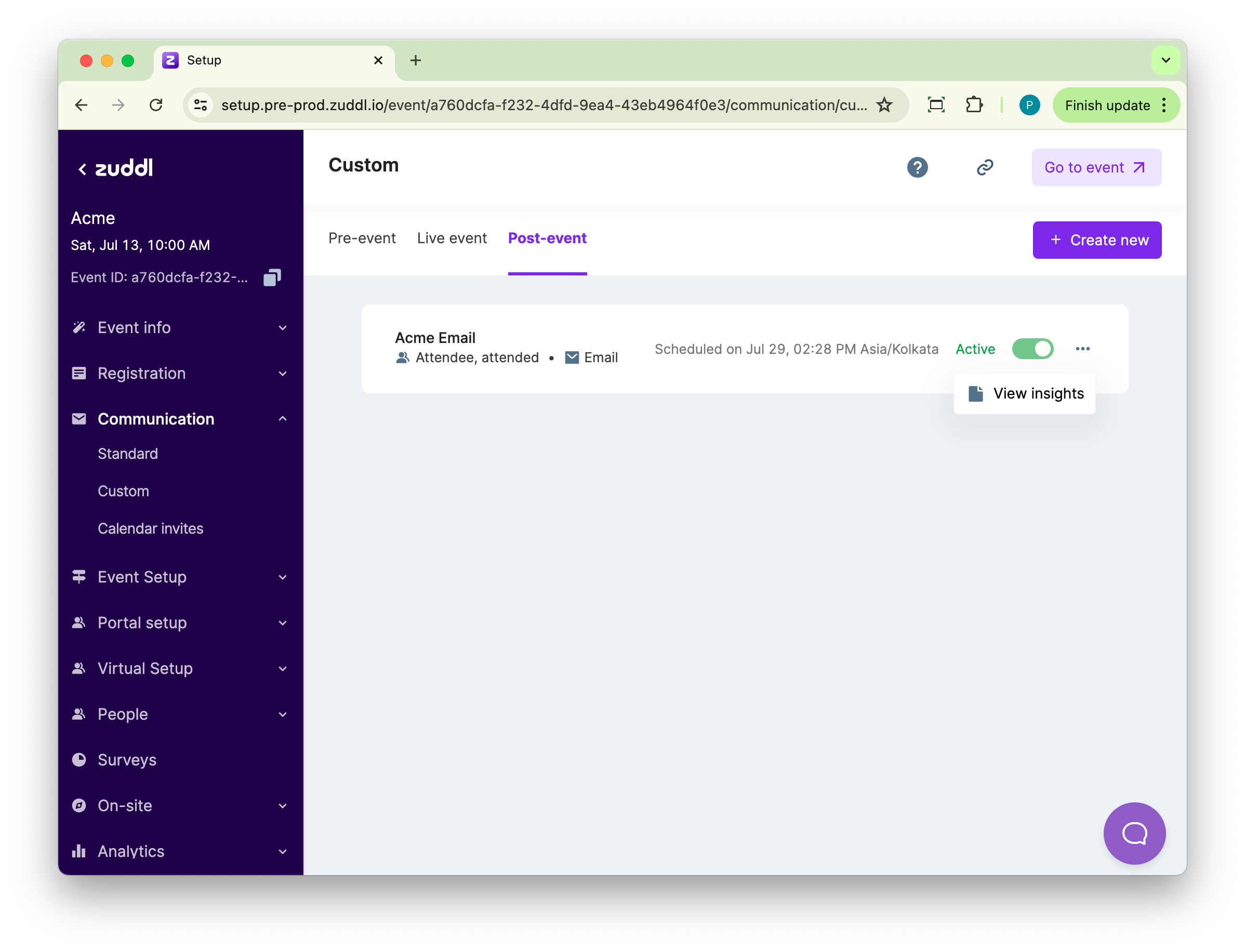 You can now view insights for custom communication emails
