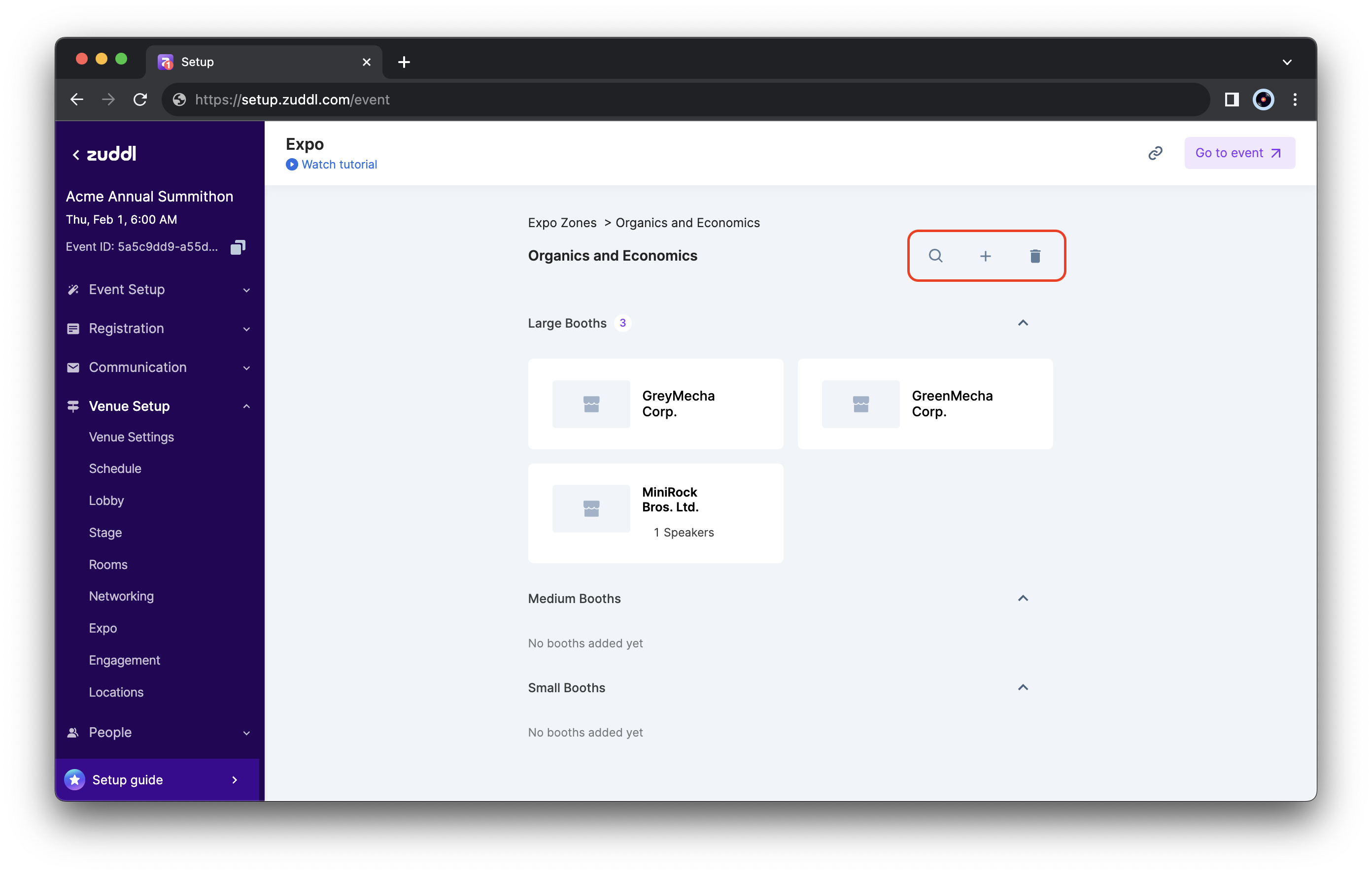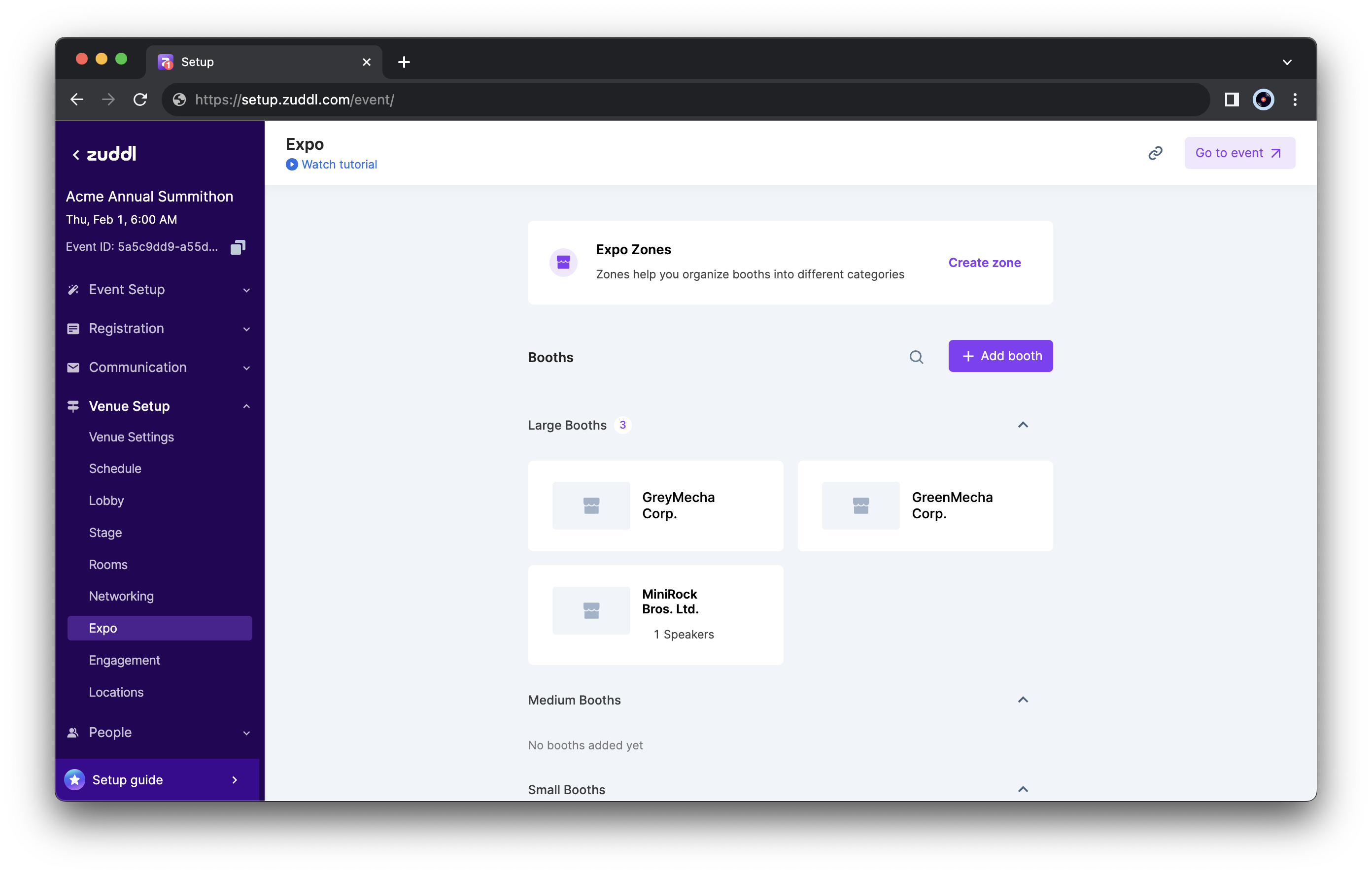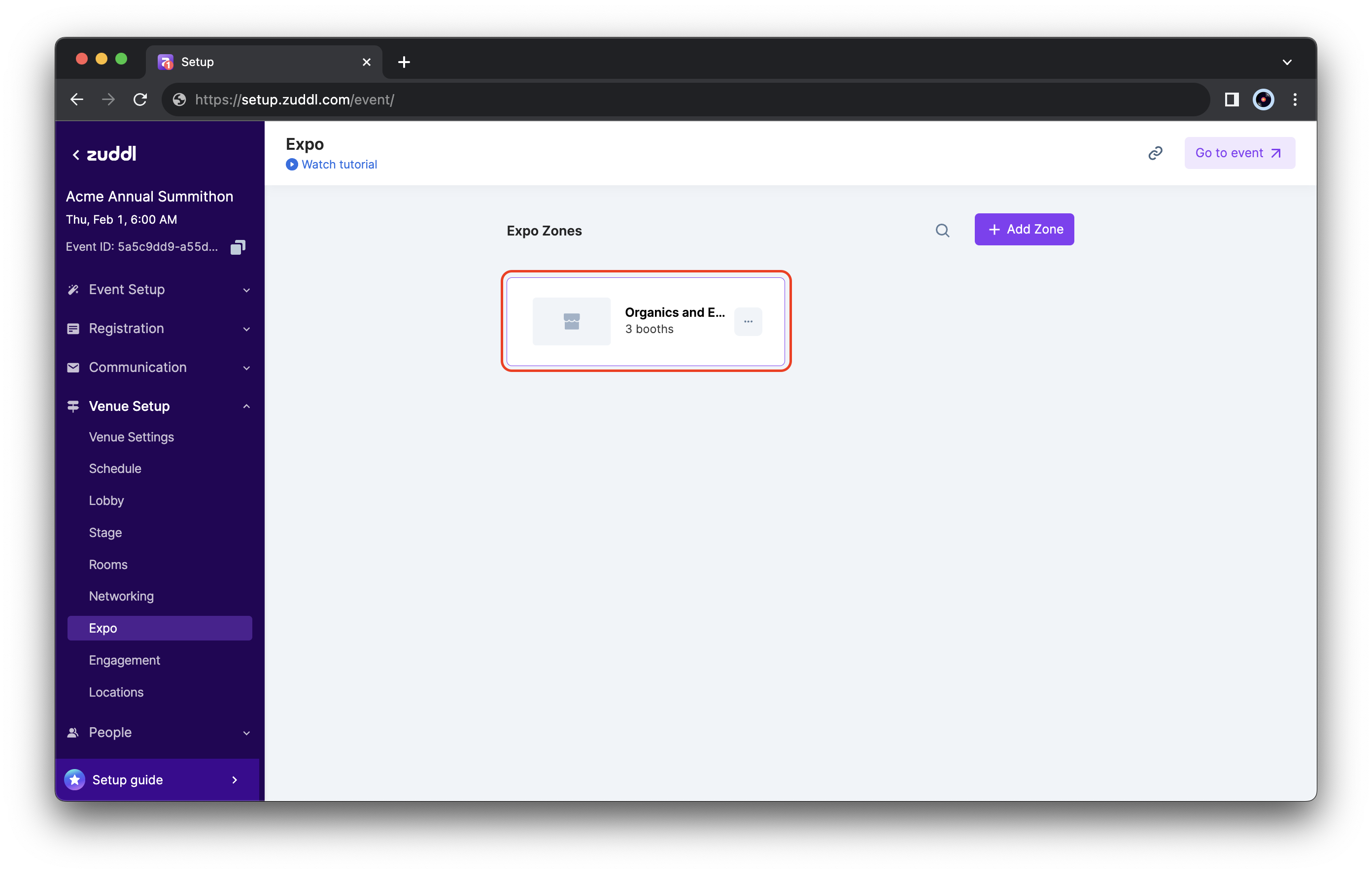 - You can add more expo zones by clicking Add Zone on the expo venue setup page.