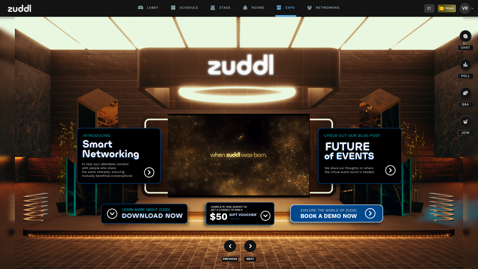 To set up an expo booth, go to Venue Setup > Expo. A booth can be created in two ways: