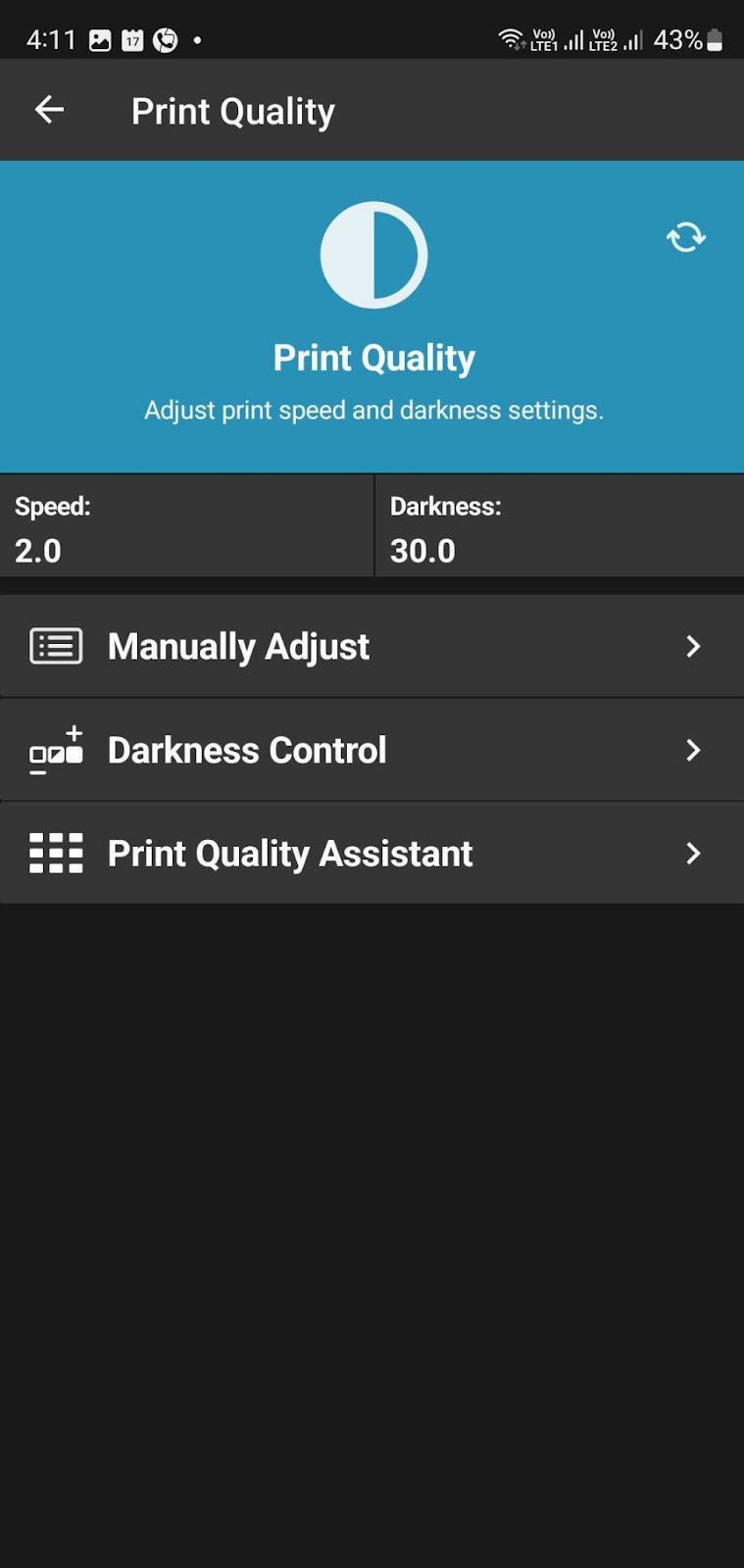 - Select “Manually adjust” to configure Print Speed and Darkness.